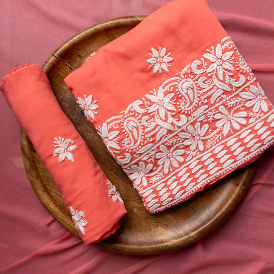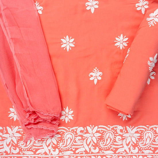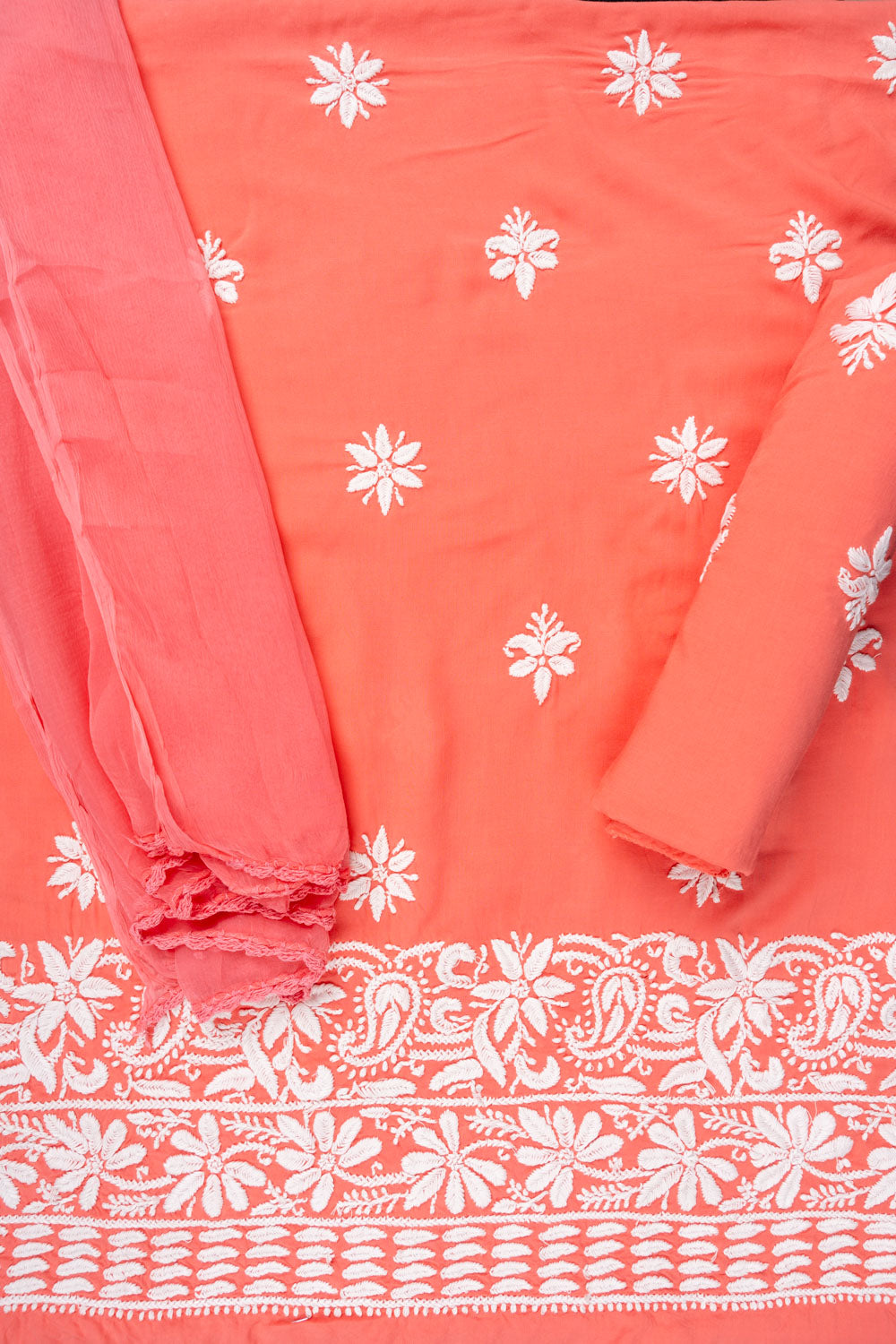 Panna Coral Threadwork Cotton Unstitched Salwar Suit With Chiffon Dupatta