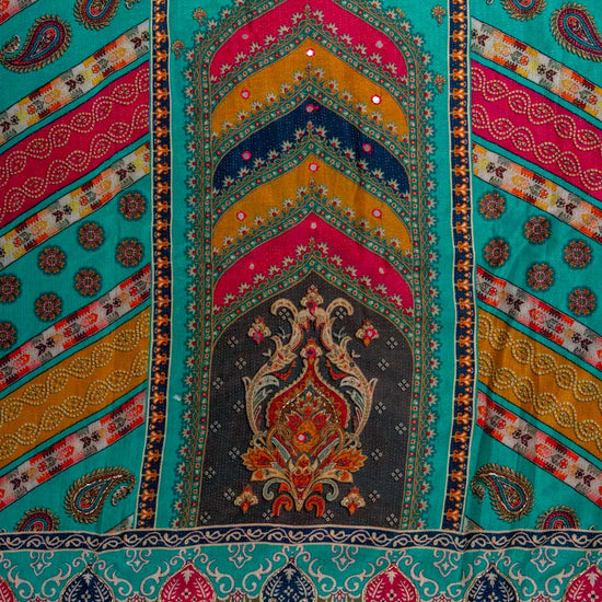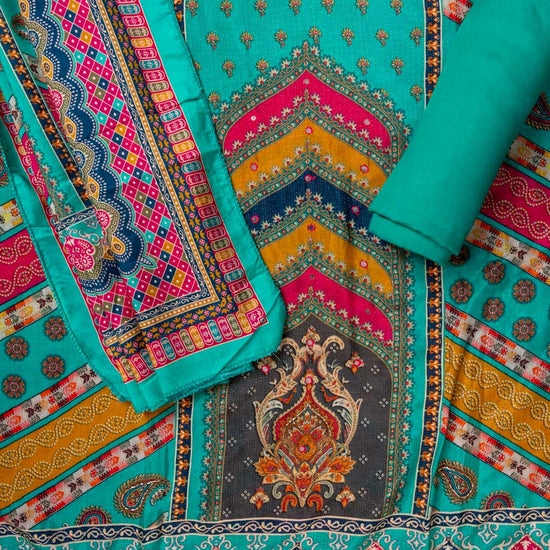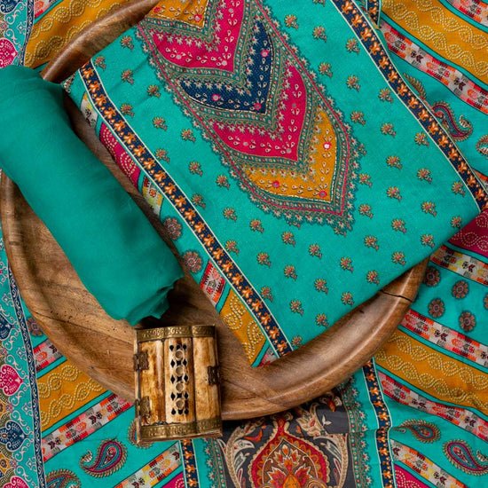 Panna Rama Cutdana, Mirror Sheet, Threadwork, Digital & Floral Printed Muslin Unstitched Salwar Suit With Muslin Cotton Dupatta