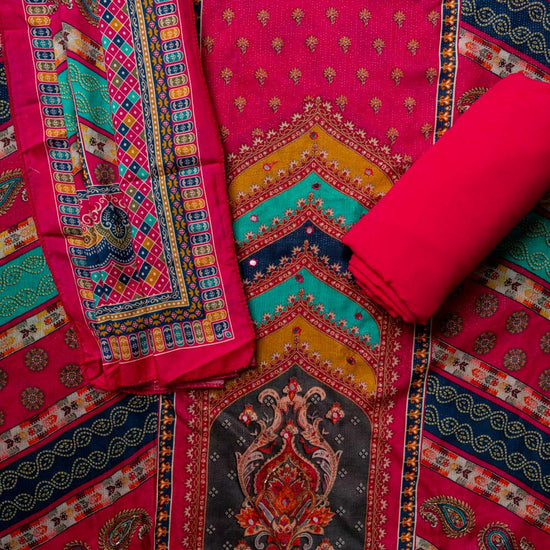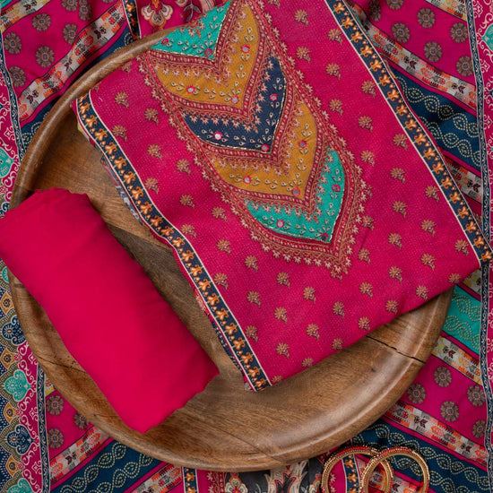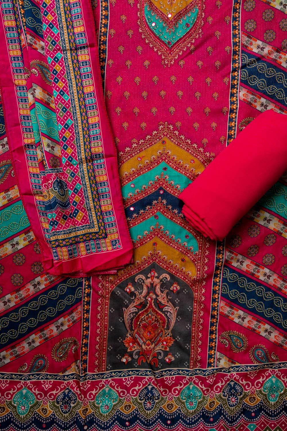 Panna Rani Cutdana, Mirror Sheet, Threadwork, Digital & Floral Printed Muslin Unstitched Salwar Suit With Muslin Cotton Dupatta