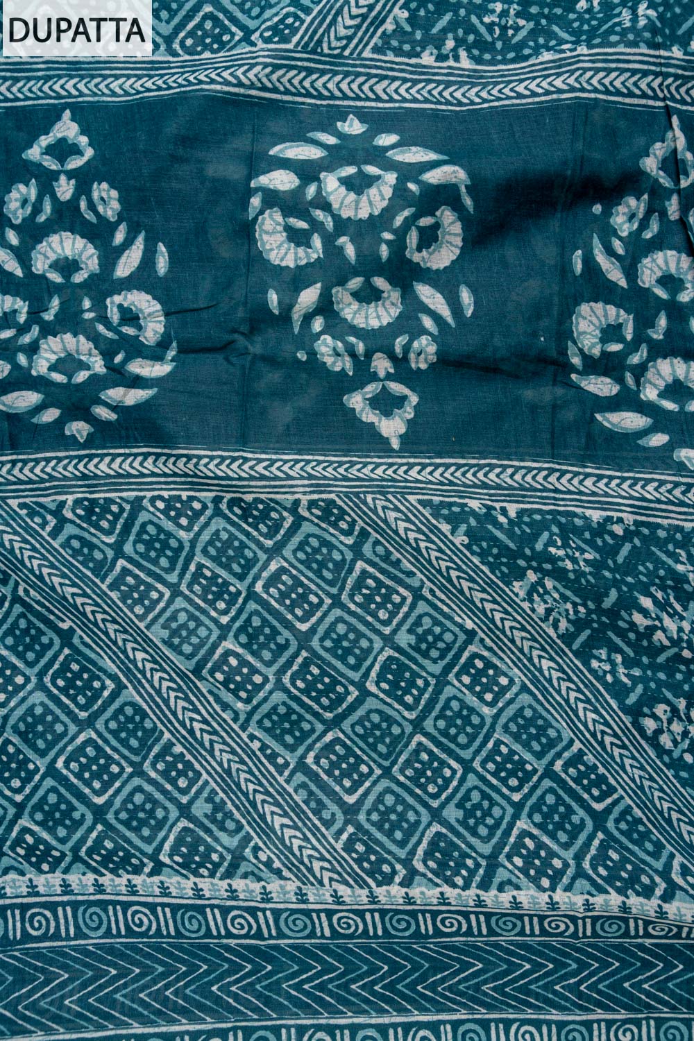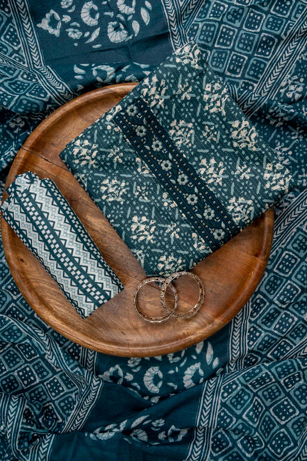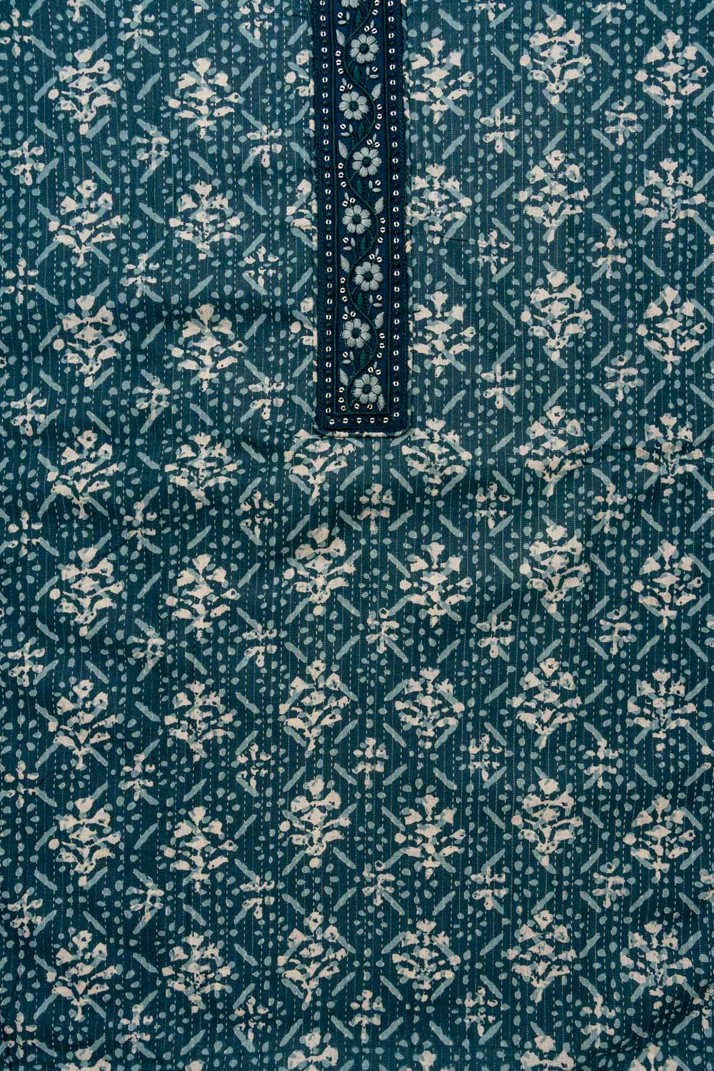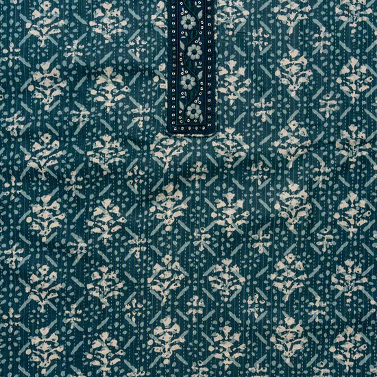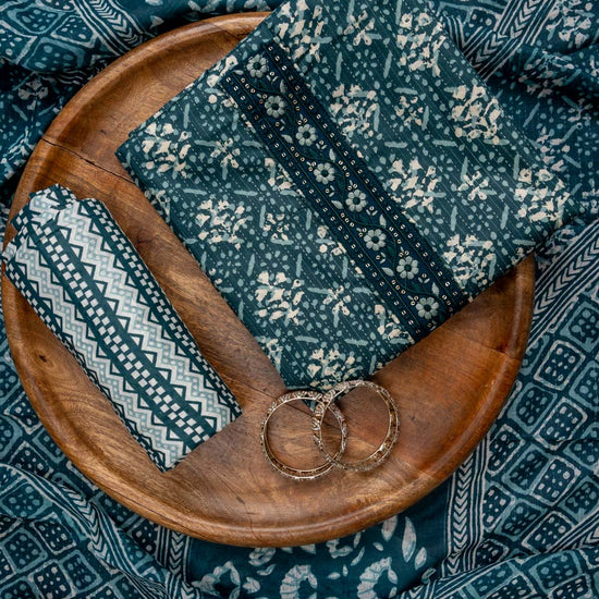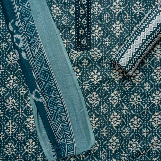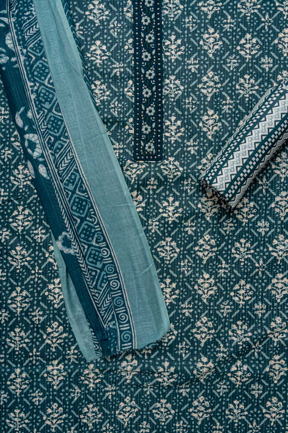 Panna Peacock Threadwork & Digital Printed Cotton Unstitched Salwar Suit With Cotton Dupatta