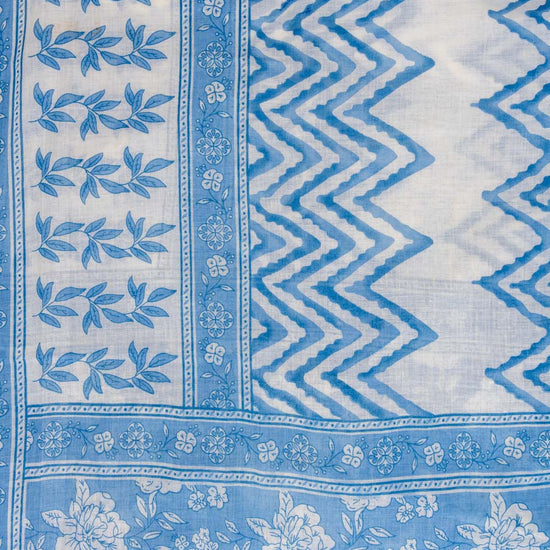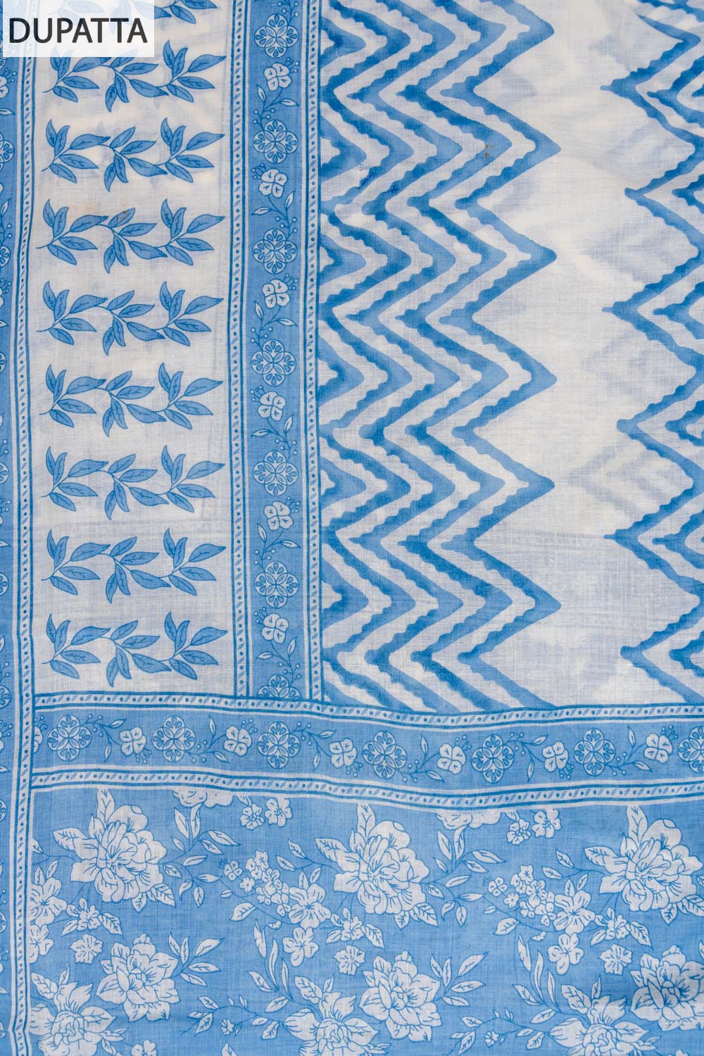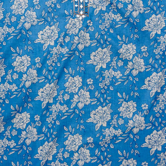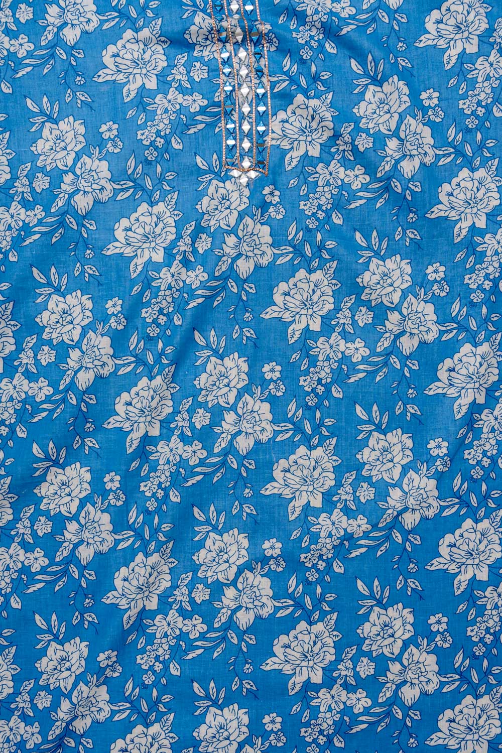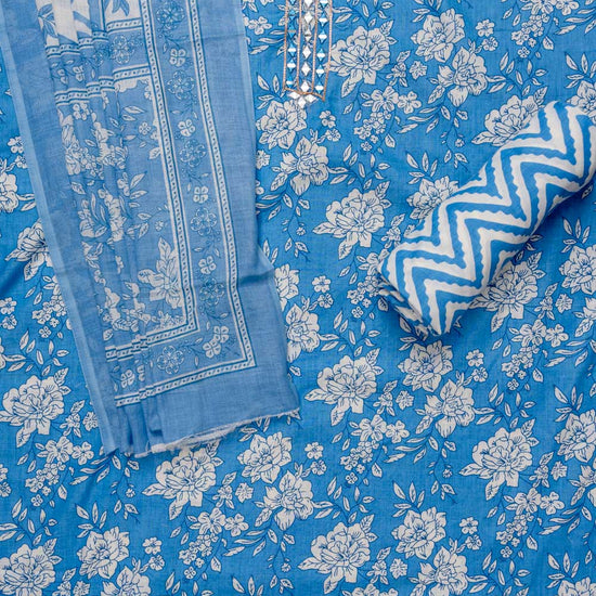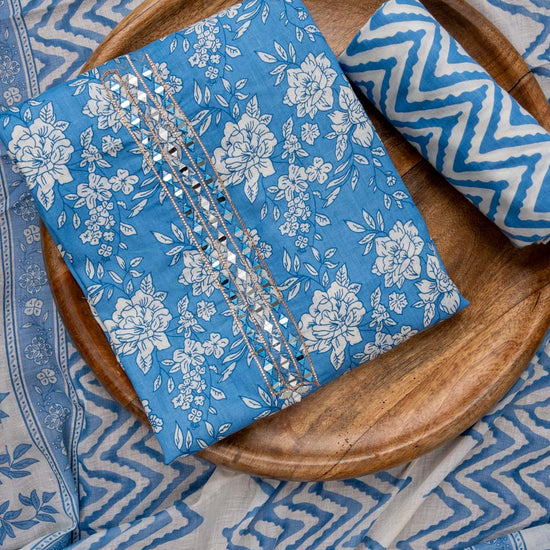 Panna Sky Blue Mirror, Threadwork & Floral Printed Cotton Unstitched Salwar Suit With Cotton Dupatta
