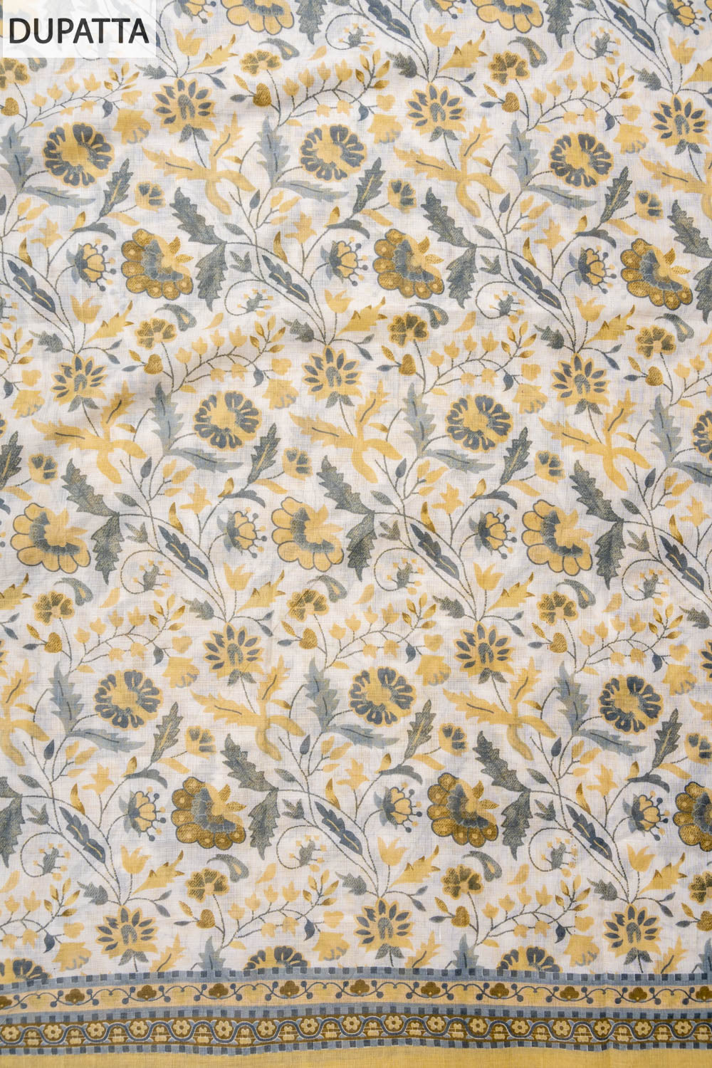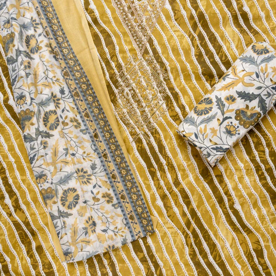 Mustard Sequence, Zari Threadwork & Lehriya Printed Cotton Unstitched Salwar Suit With Cotton Dupatta