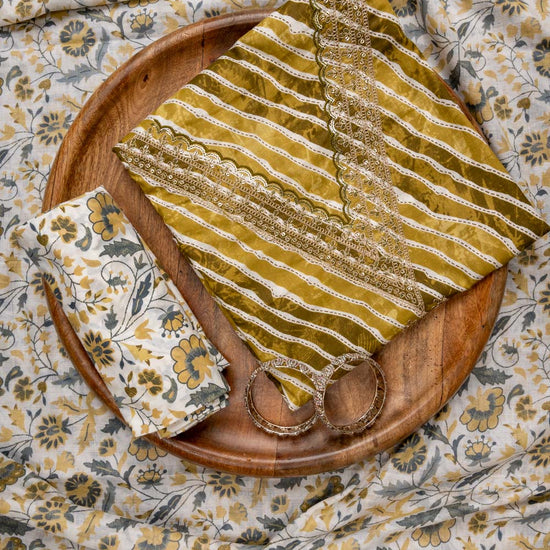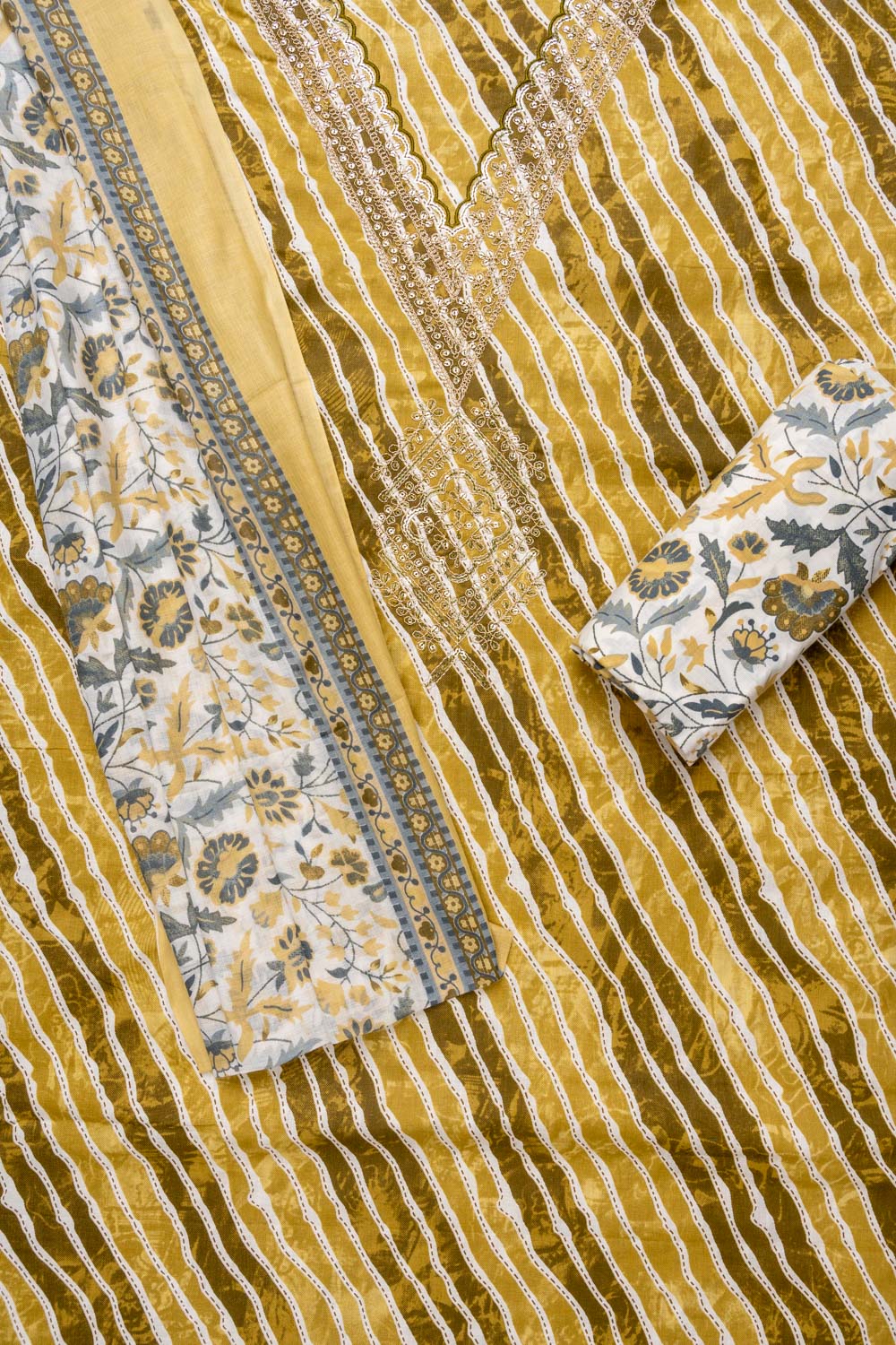Mustard Sequence, Zari Threadwork & Lehriya Printed Cotton Unstitched – The Panna Shop