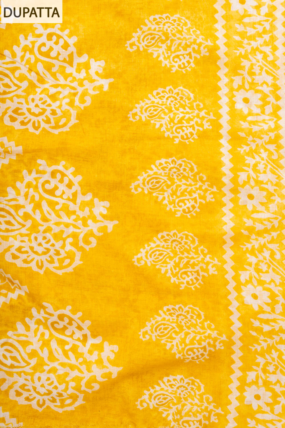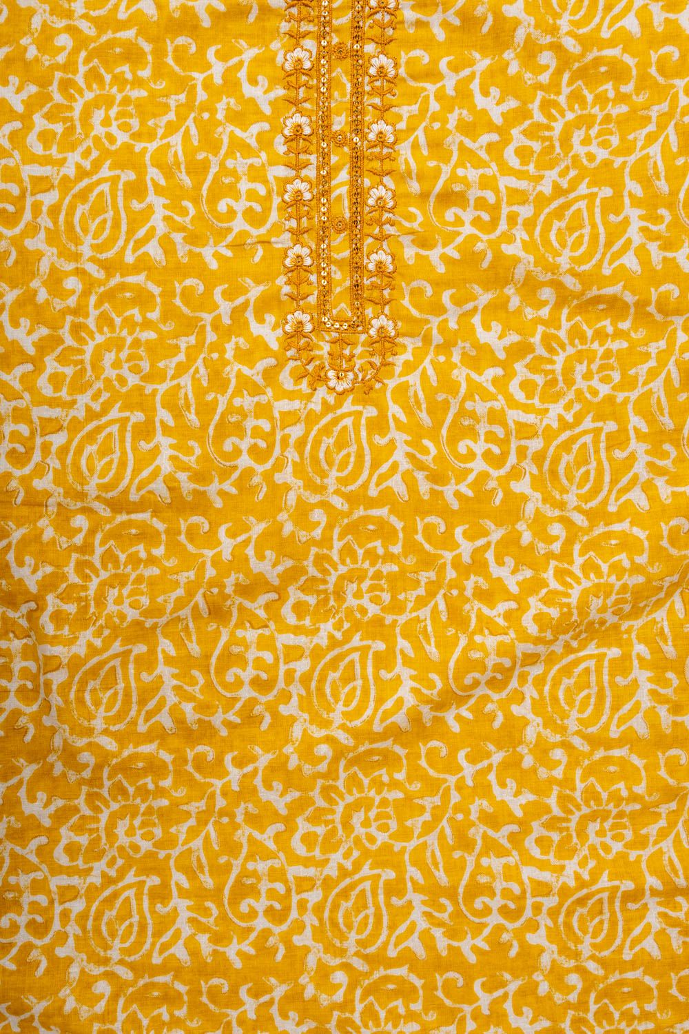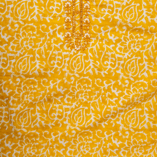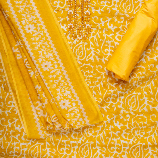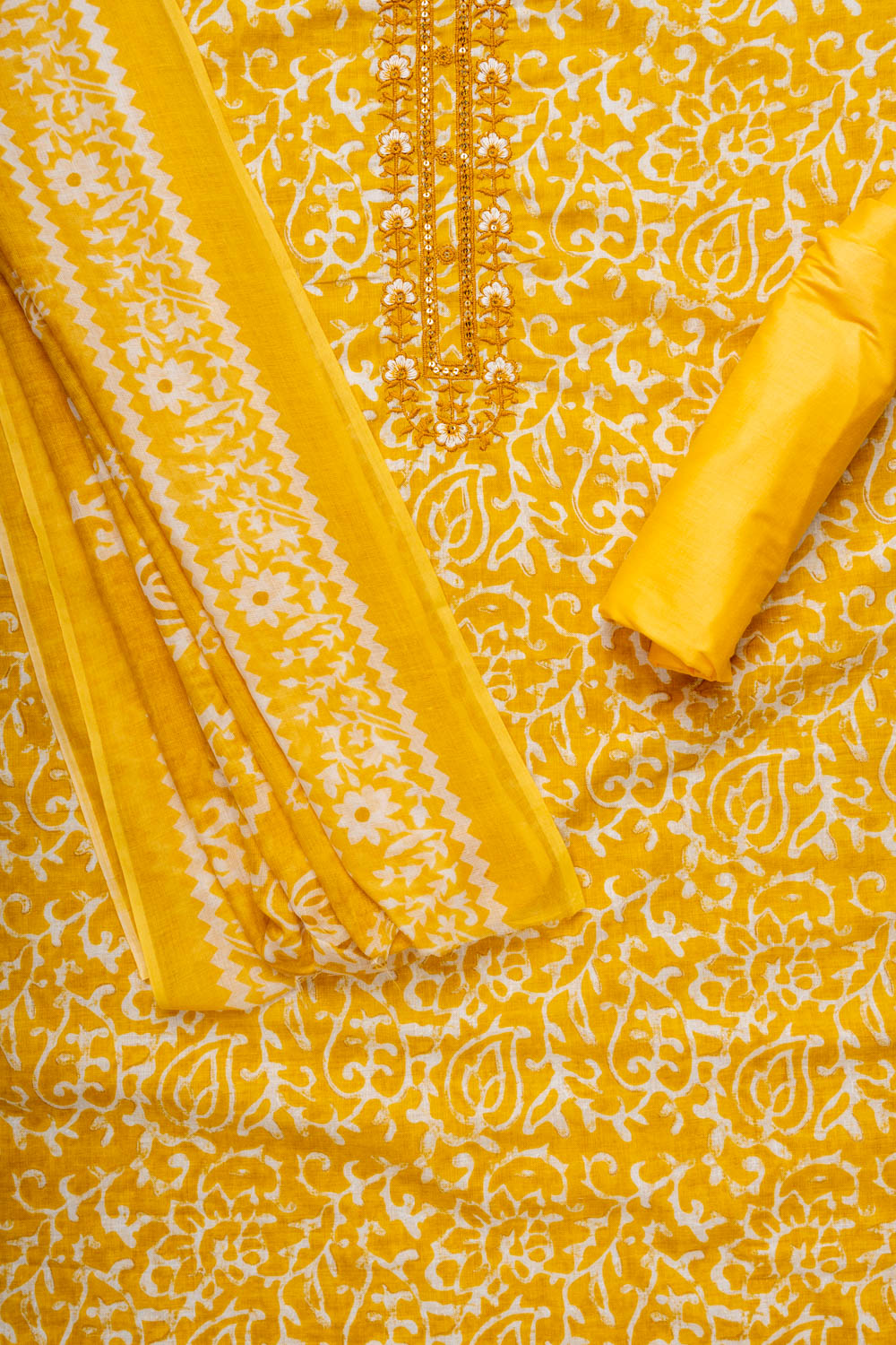 Panna Mango Gold Threadwork & Floral Printed Cotton Unstitched Salwar Suit With Cotton Dupatta