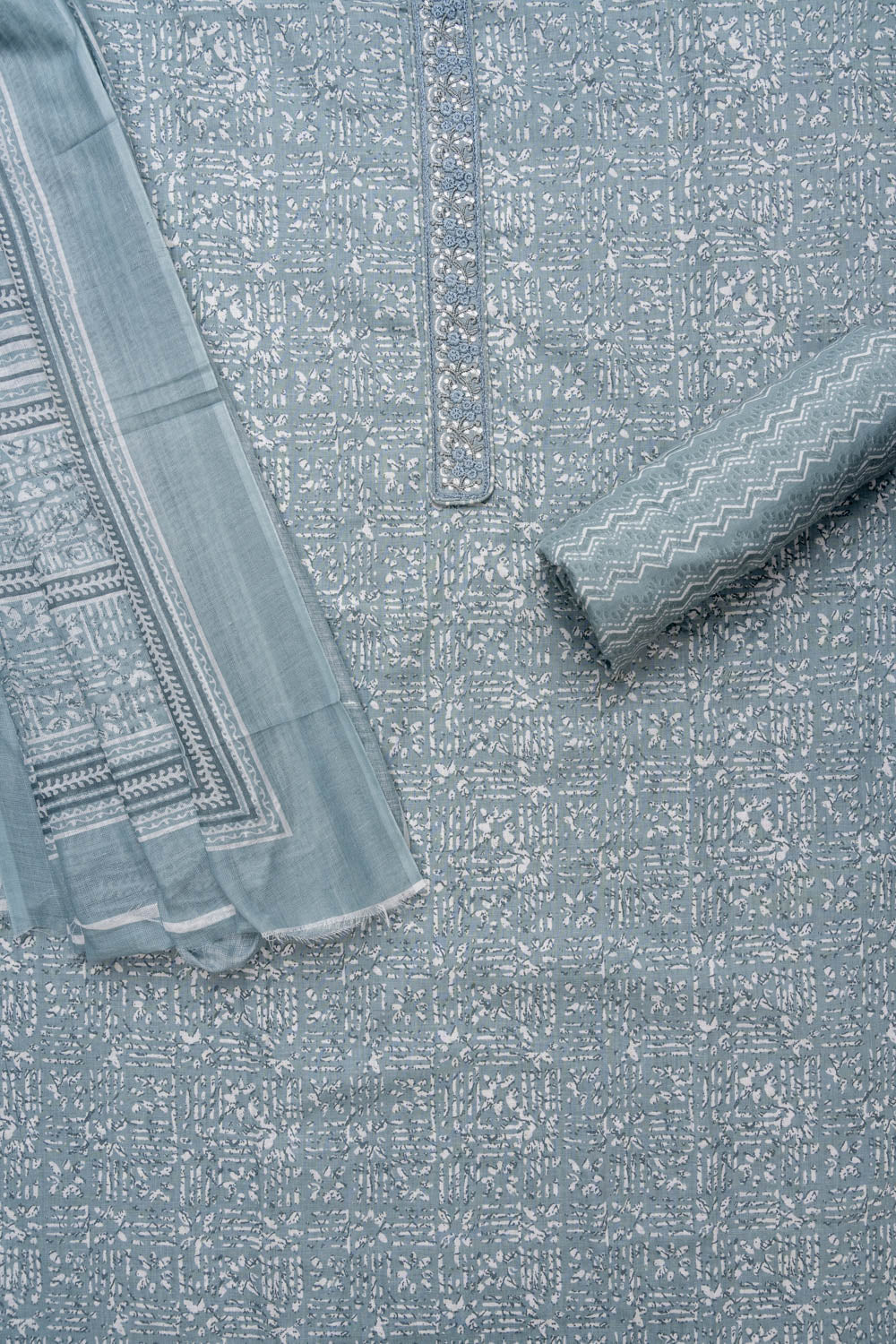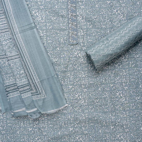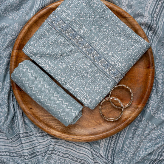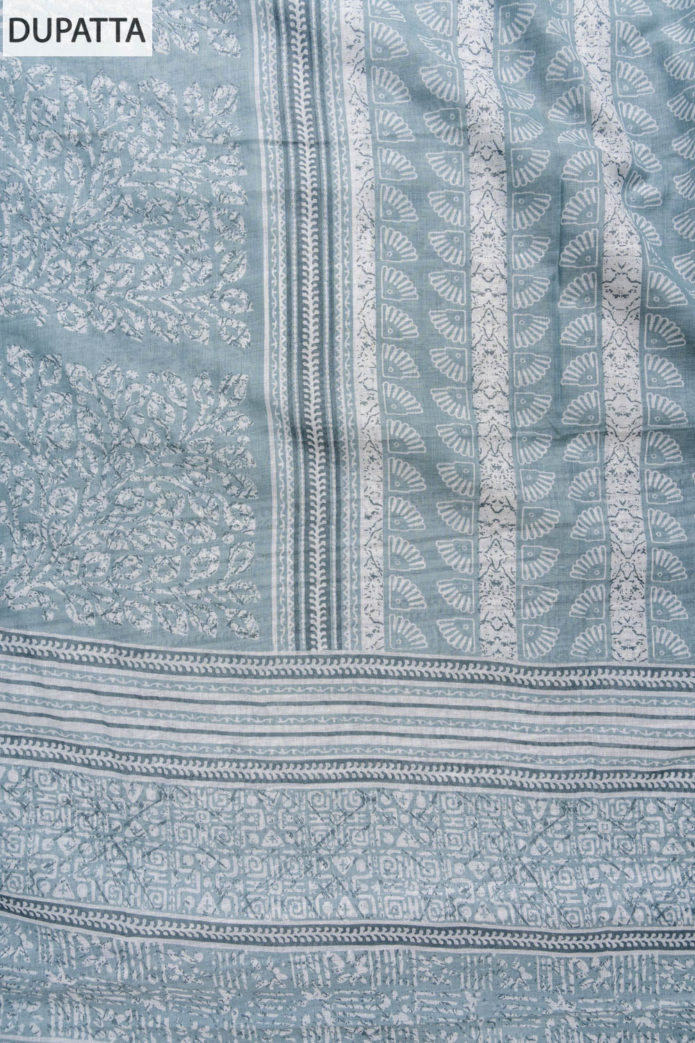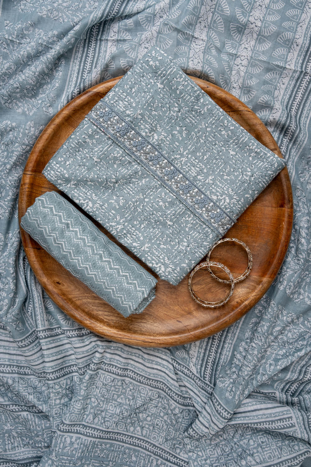 Panna Grey Threadwork & Digital Printed Cotton Unstitched Salwar Suit With Cotton Dupatta