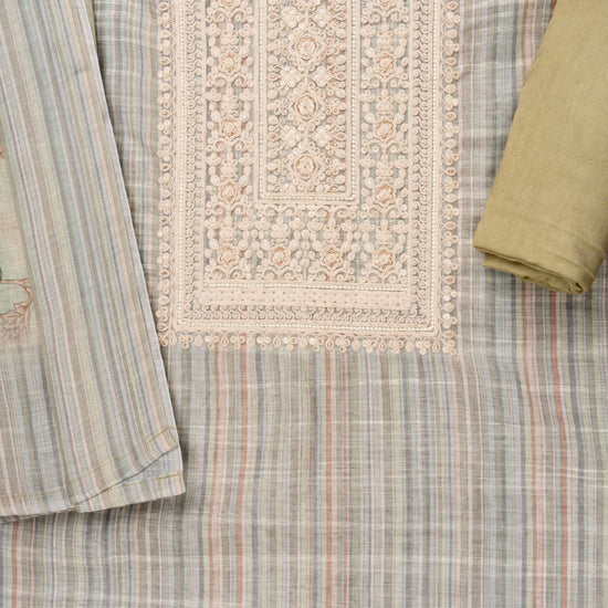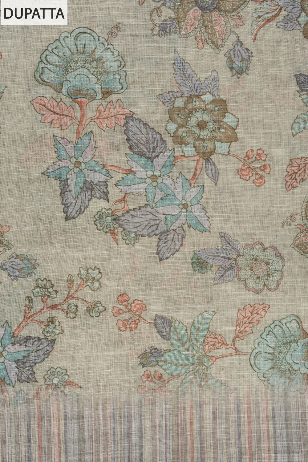 Panna Pista Sequence, Threadwork & Digital Printed Cotton Unstitched Salwar Suit With Cotton Dupatta