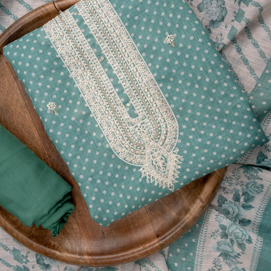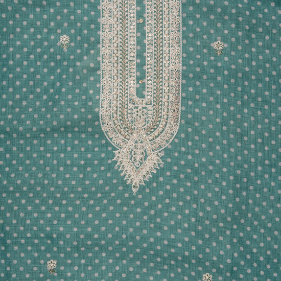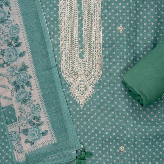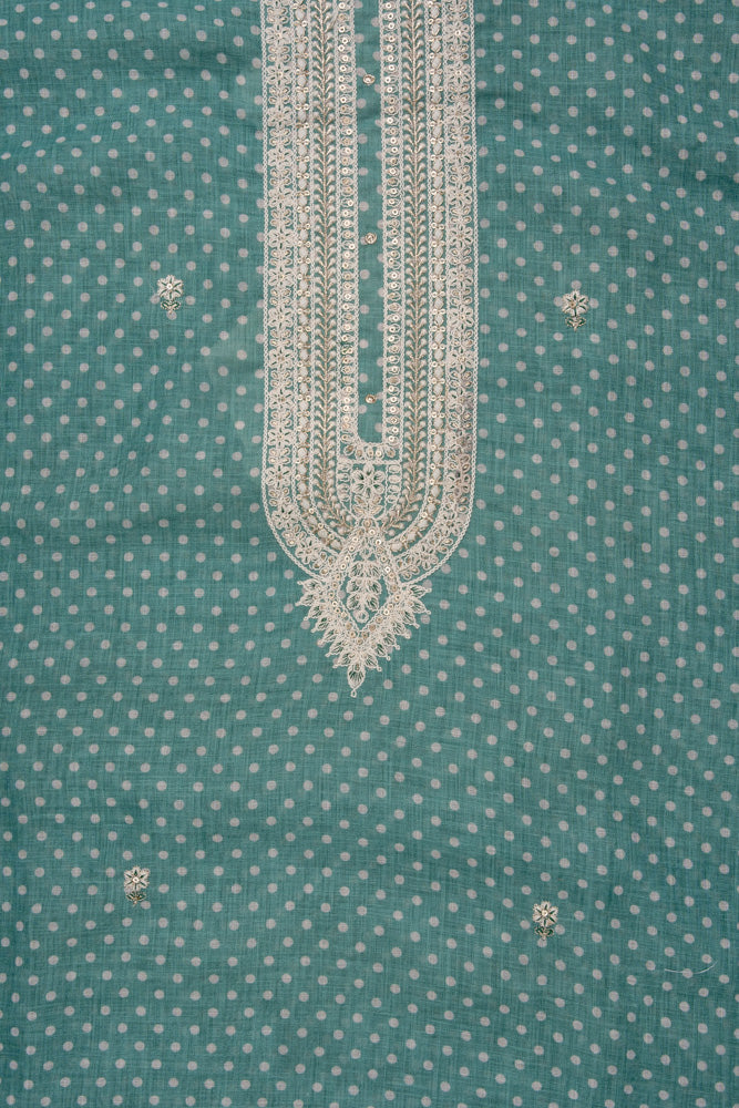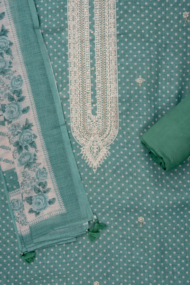 Panna Mint Green Sequence, Zari Threadwork & Digital Printed Cotton Unstitched Salwar Suit With Cotton Dupatta