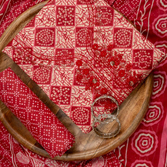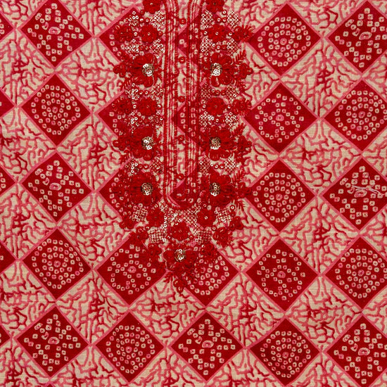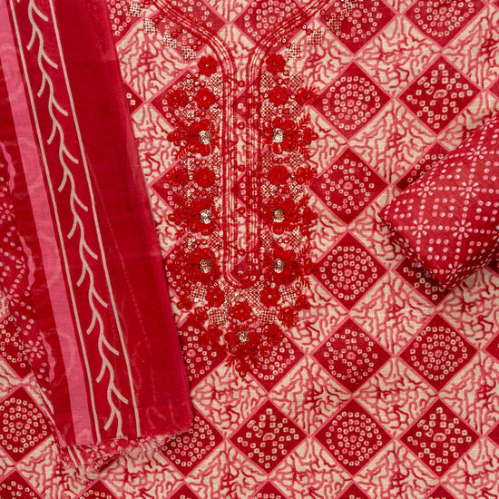 Panna Maroon Sequence, Threadwork & Digital Printed Cotton Unstitched Salwar Suit With Cotton Dupatta