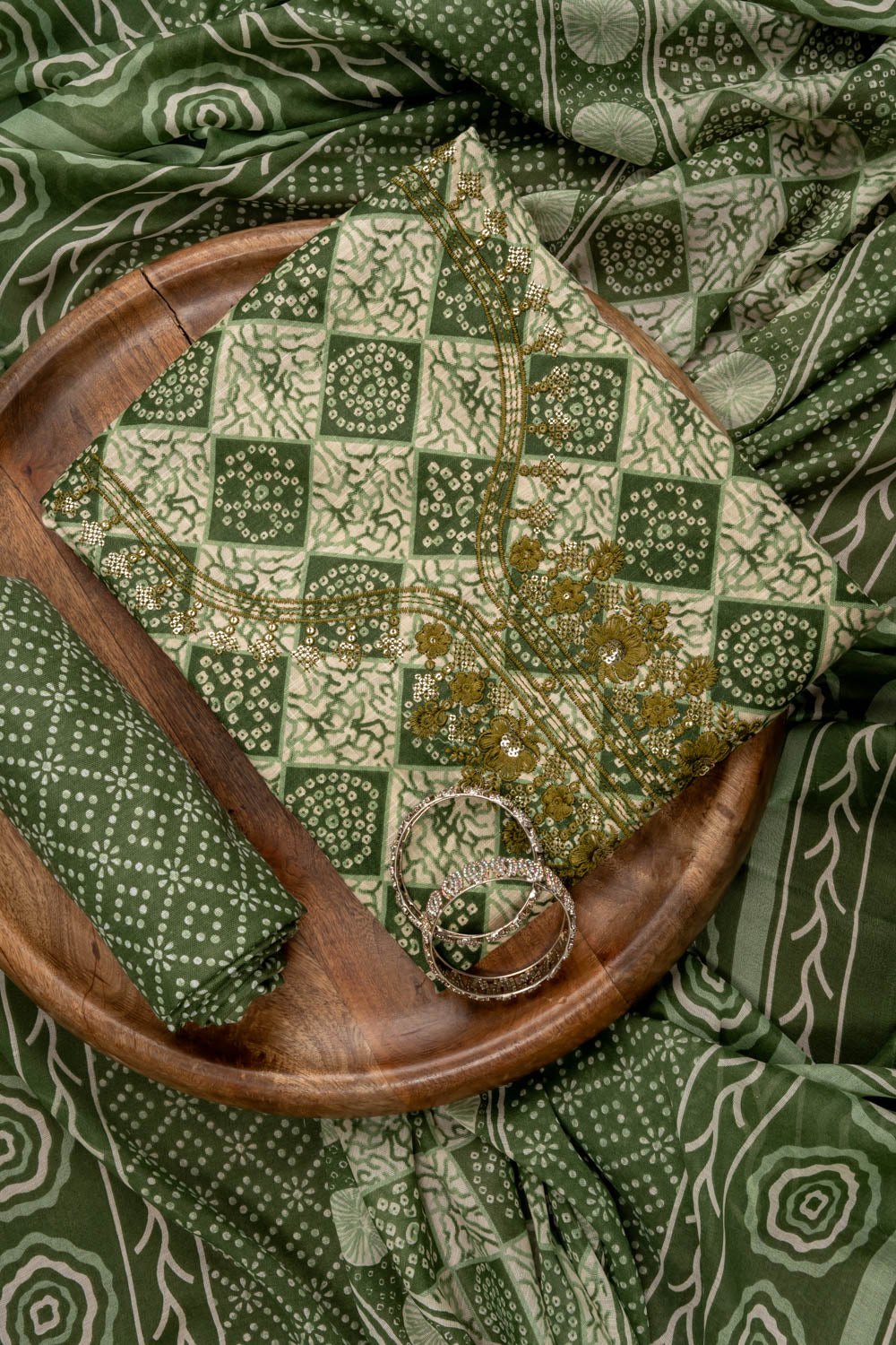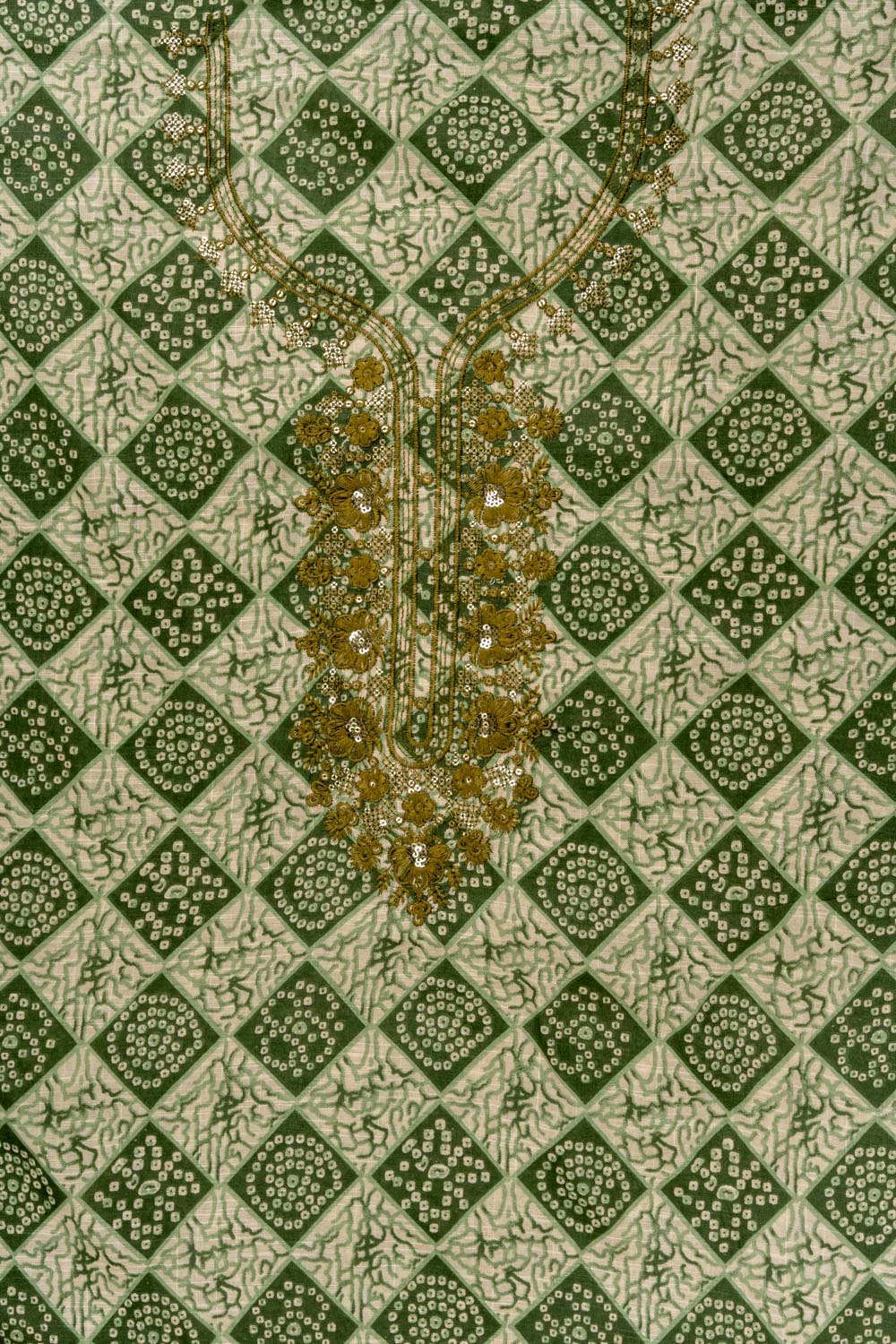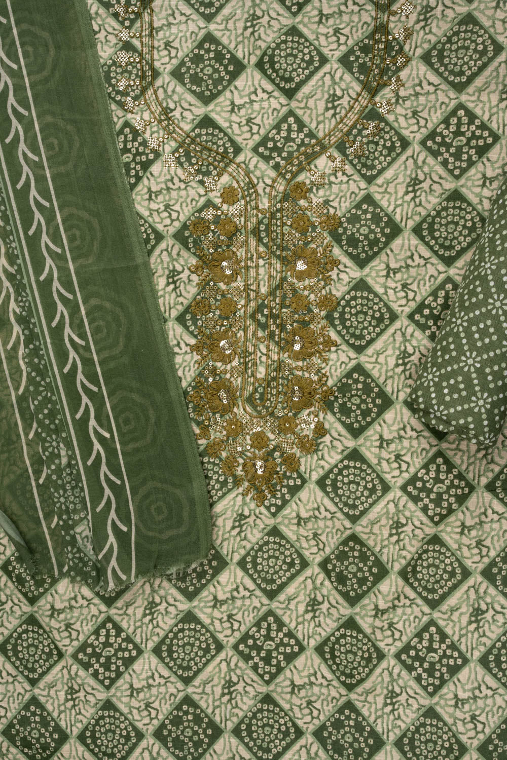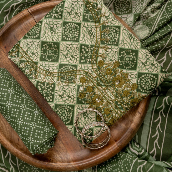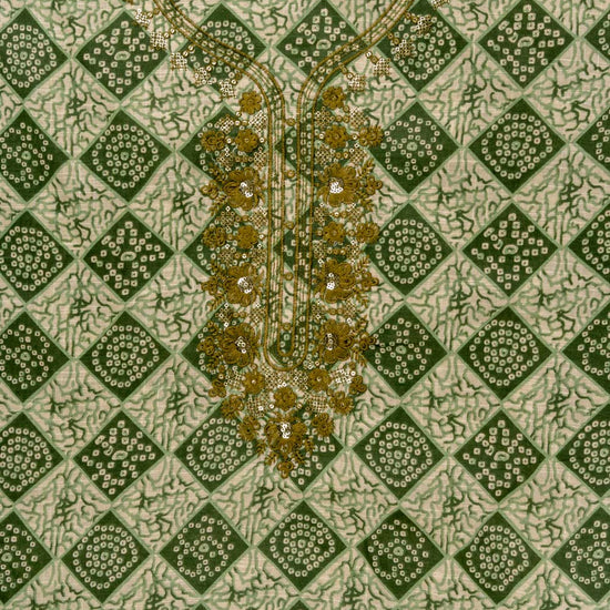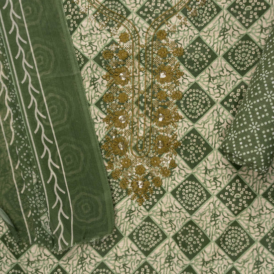 Panna Mehndi Sequence, Threadwork & Digital Printed Cotton Unstitched Salwar Suit With Cotton Dupatta