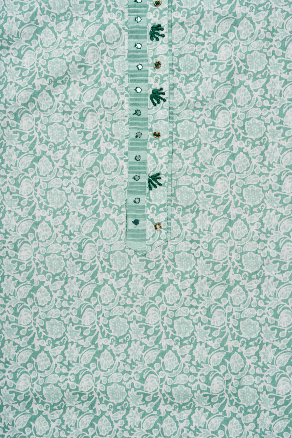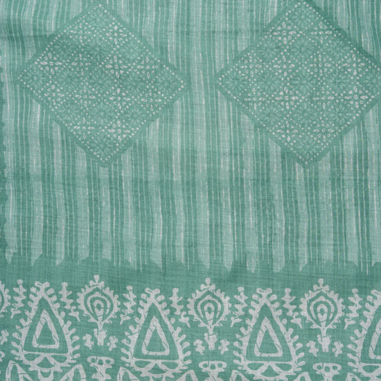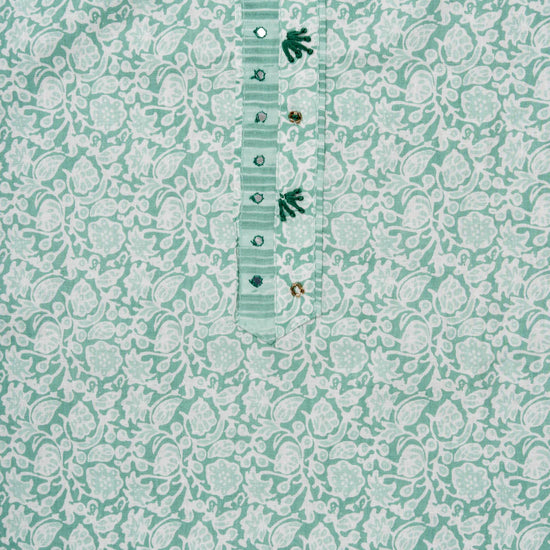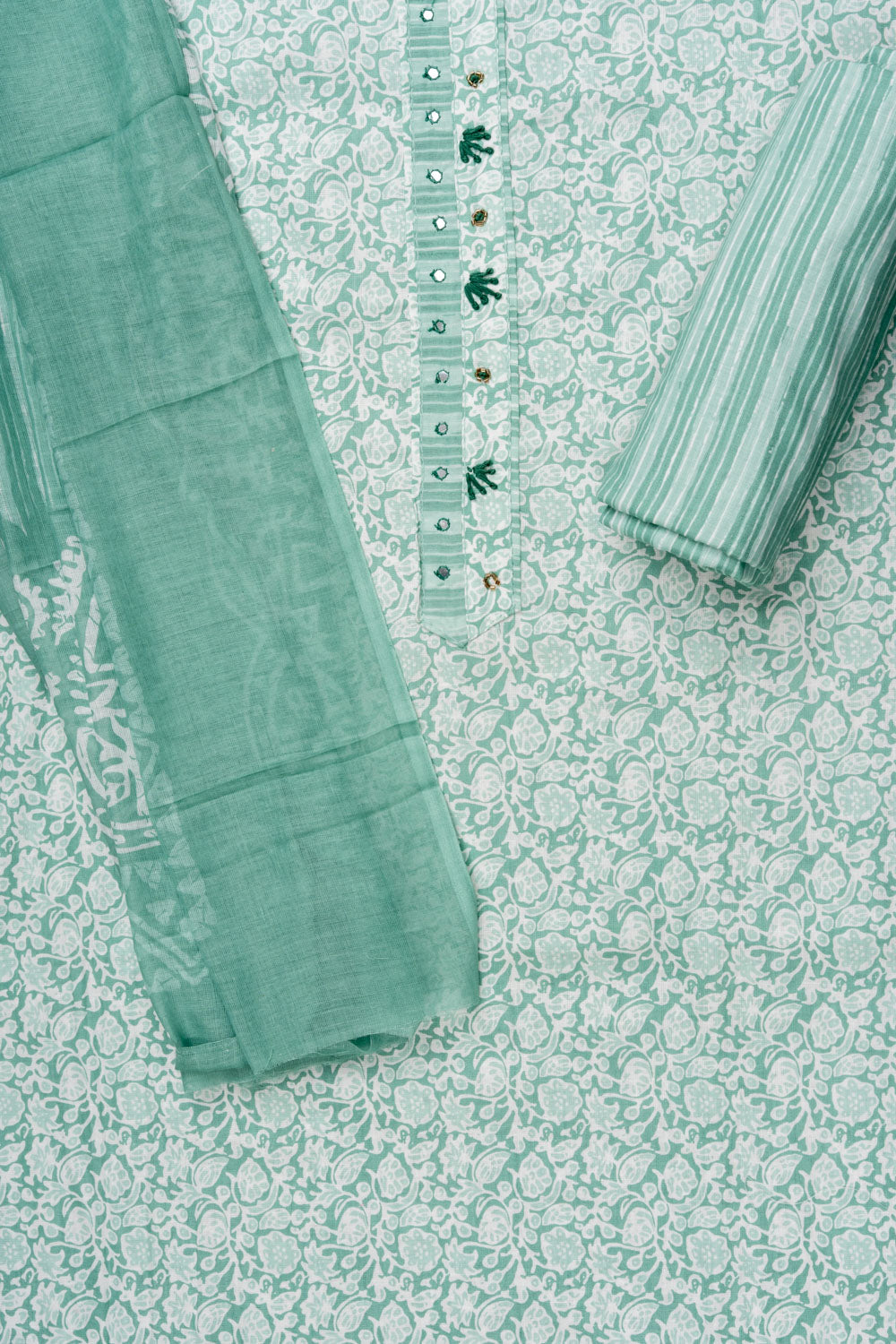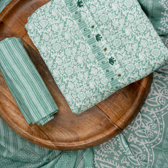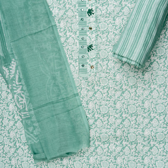 Panna Mint Green Sequence, Threadwork & Floral Printed Cotton Unstitched Salwar Suit With Cotton Dupatta