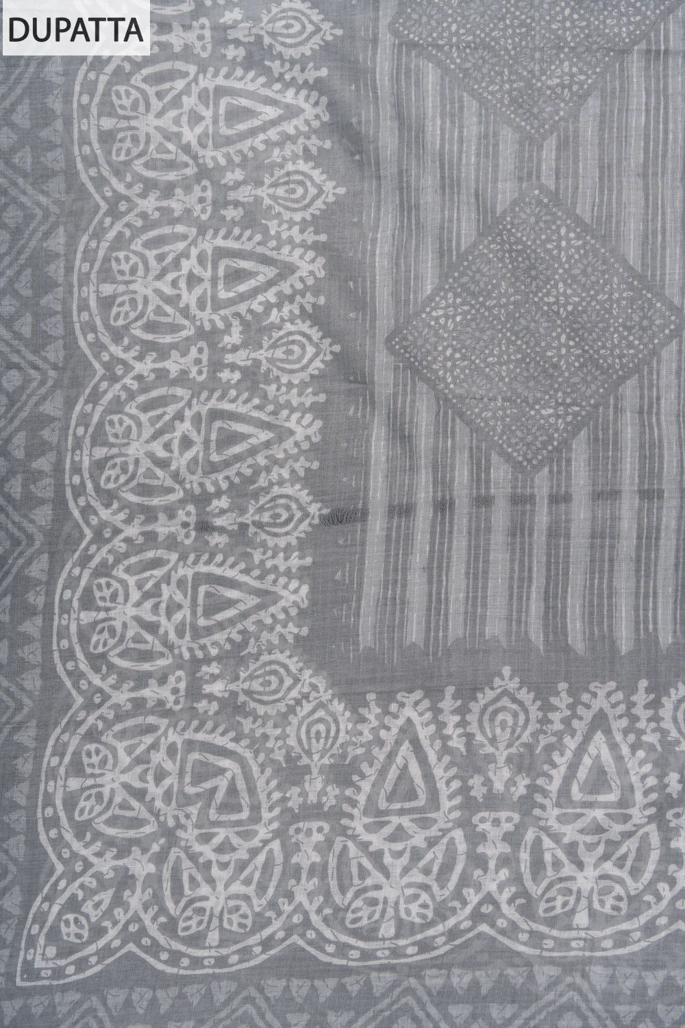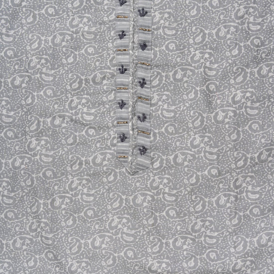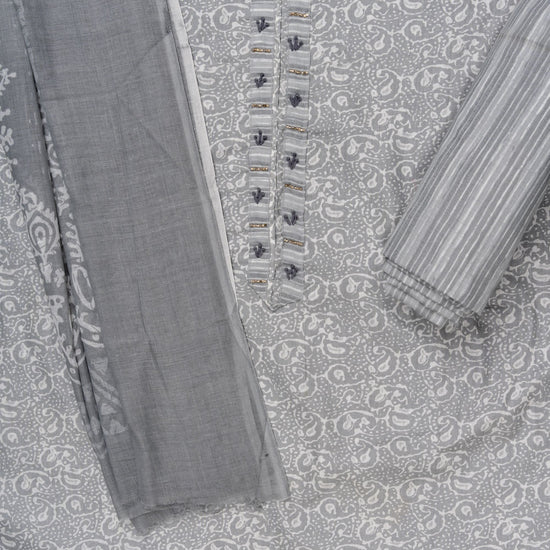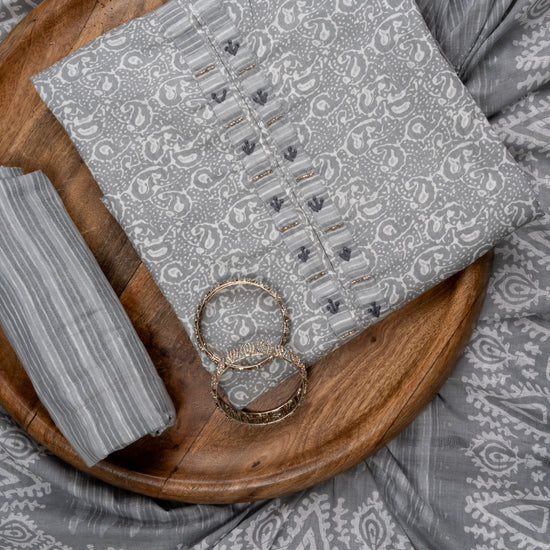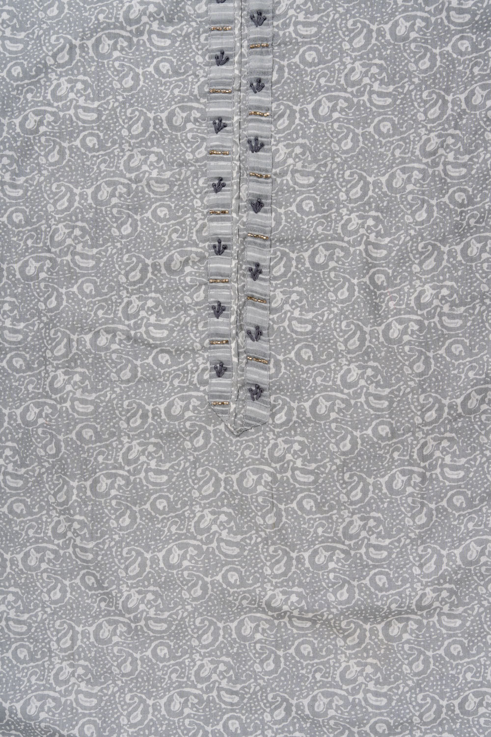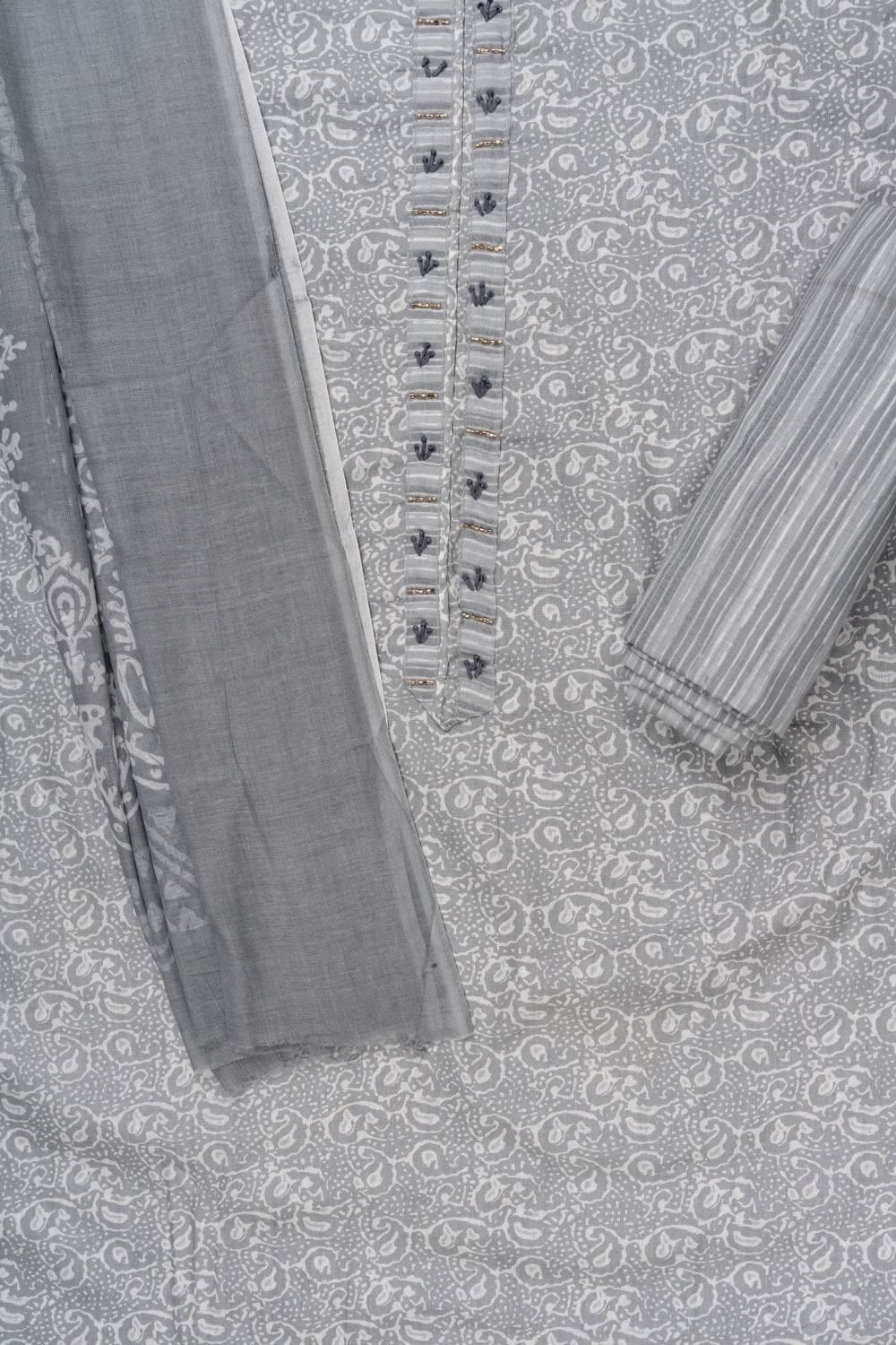 Panna Grey Sequence, Threadwork & Floral Printed Cotton Unstitched Salwar Suit With Cotton Dupatta
