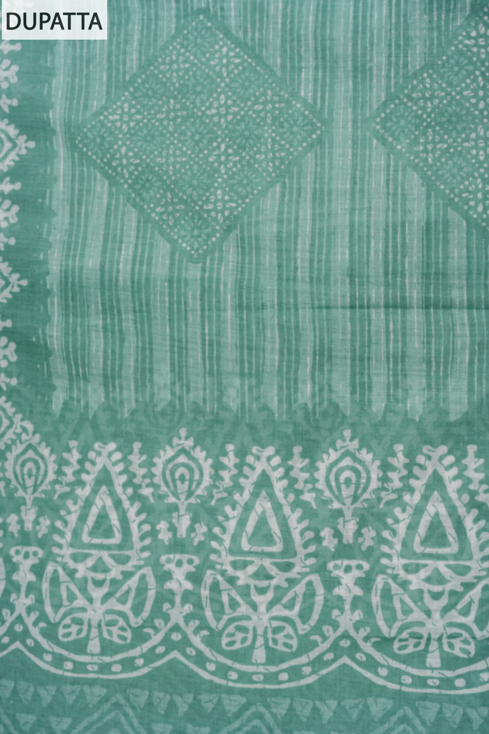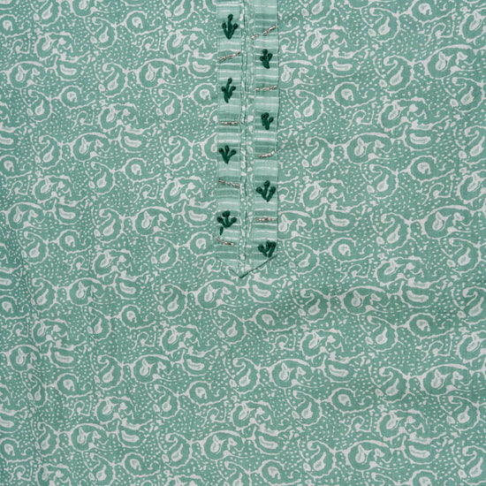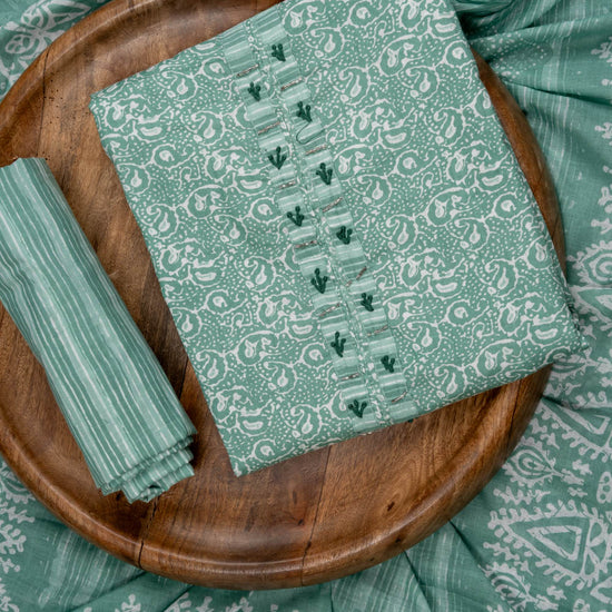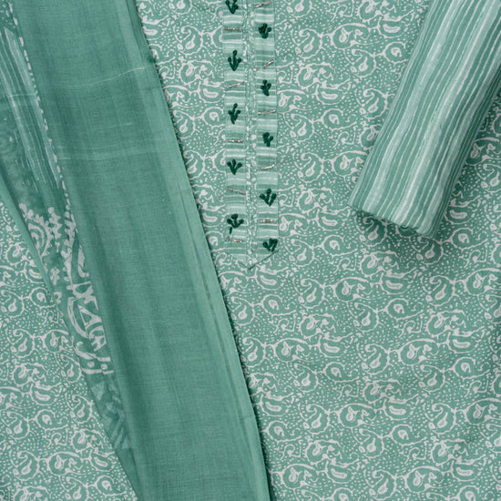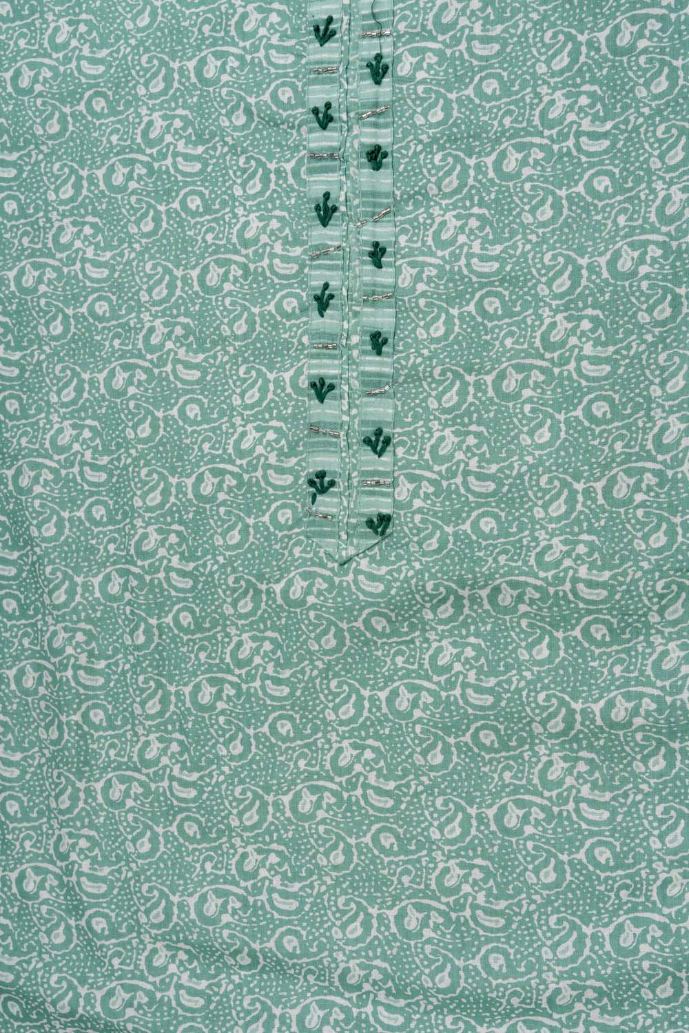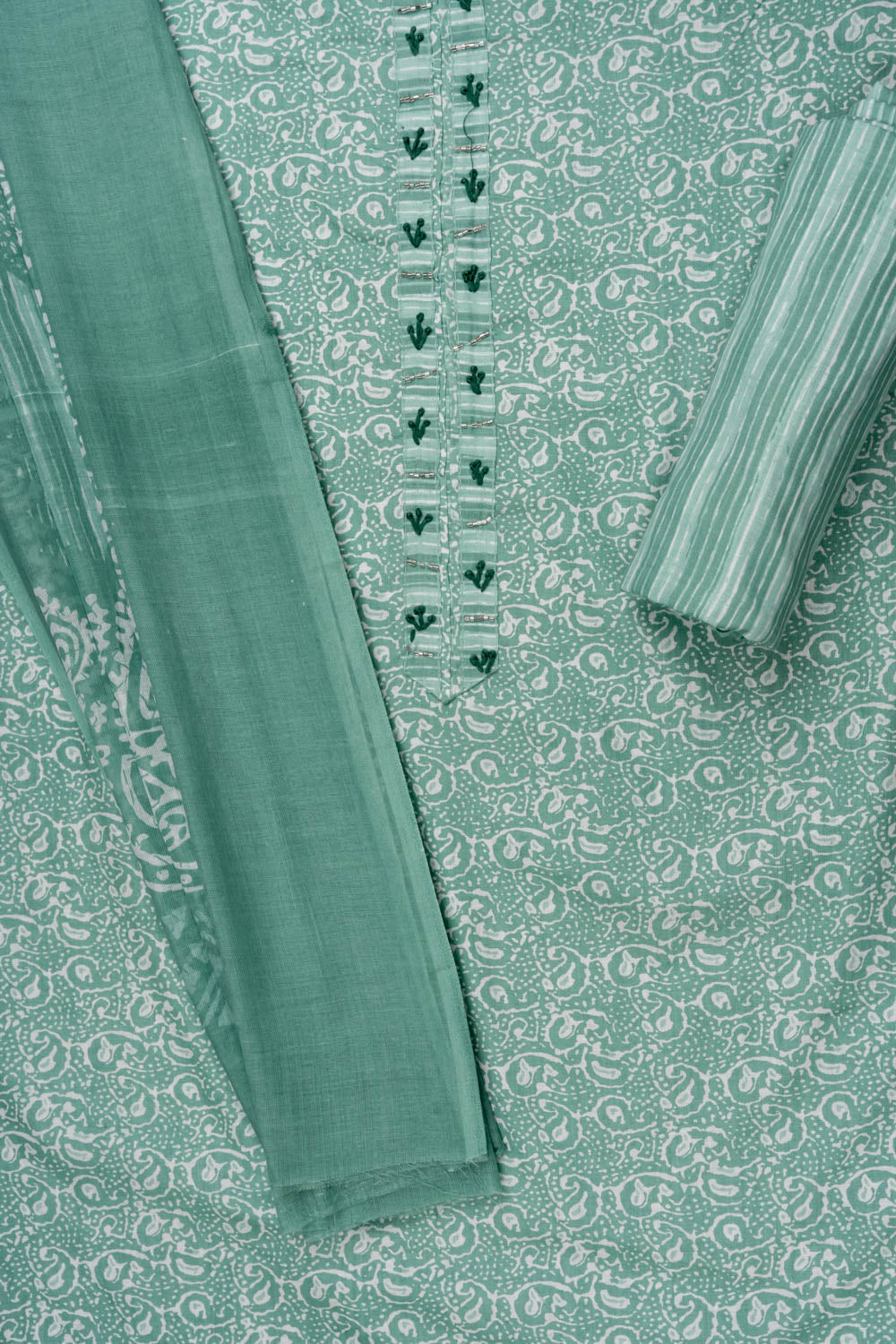 Panna Mint Green Sequence, Threadwork & Floral Printed Cotton Unstitched Salwar Suit With Cotton Dupatta