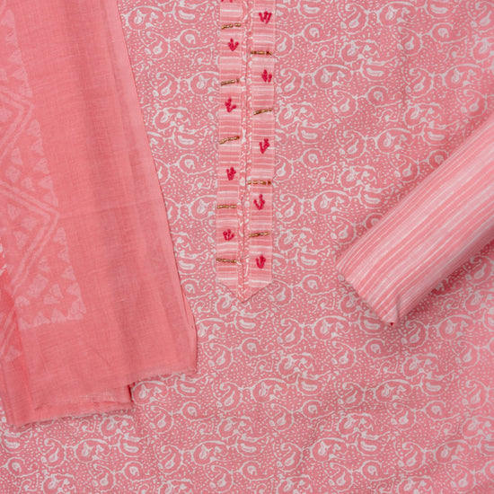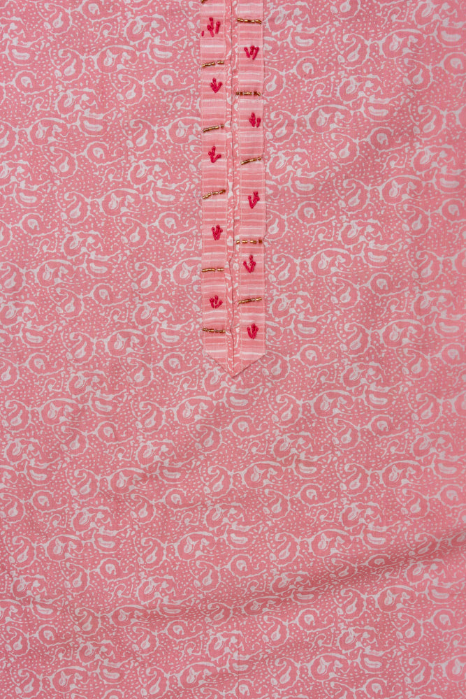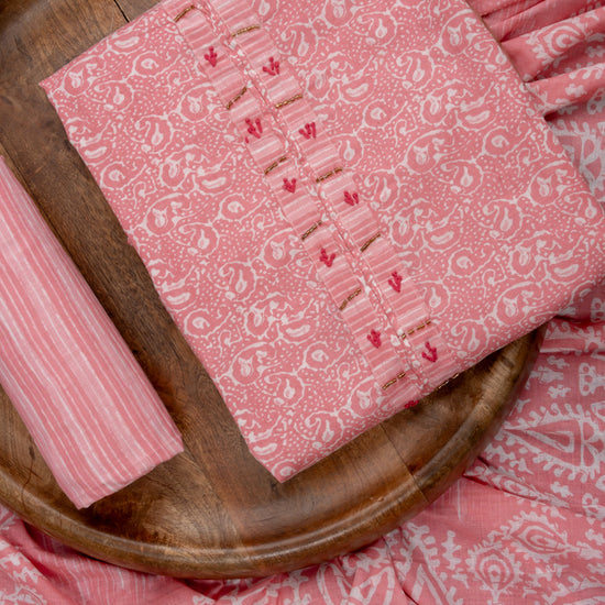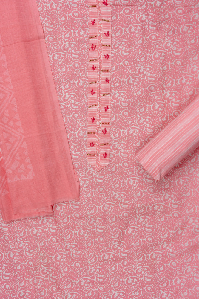 Panna Pink Sequence, Threadwork & Floral Printed Cotton Unstitched Salwar Suit With Cotton Dupatta