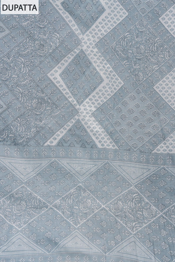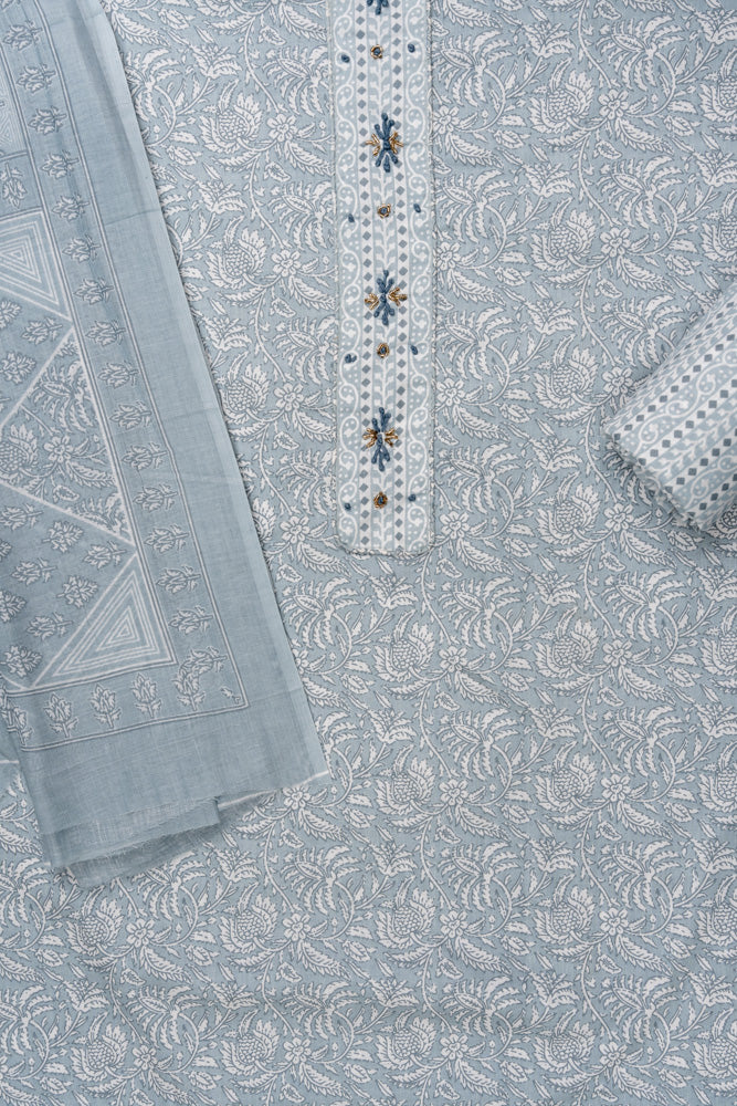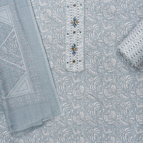 Grey Sequence, Threadwork & Floral Printed Cotton Unstitched Salwar Suit With Cotton Dupatta