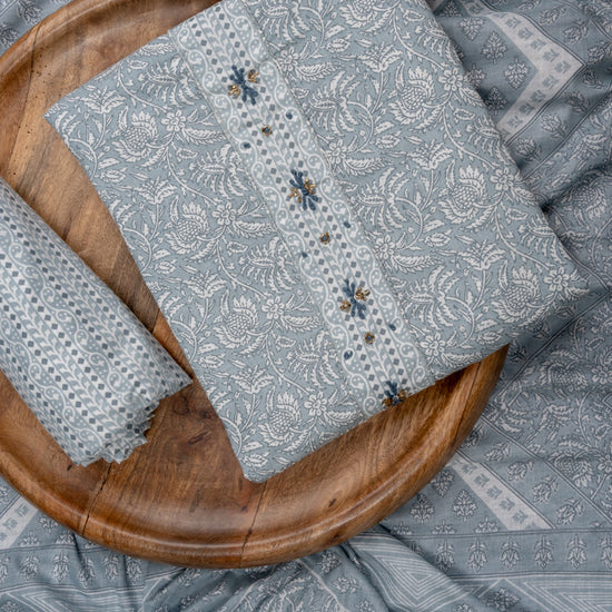 Grey Sequence, Threadwork & Floral Printed Cotton Unstitched Salwar Su – The Panna Shop
