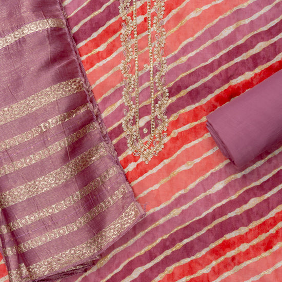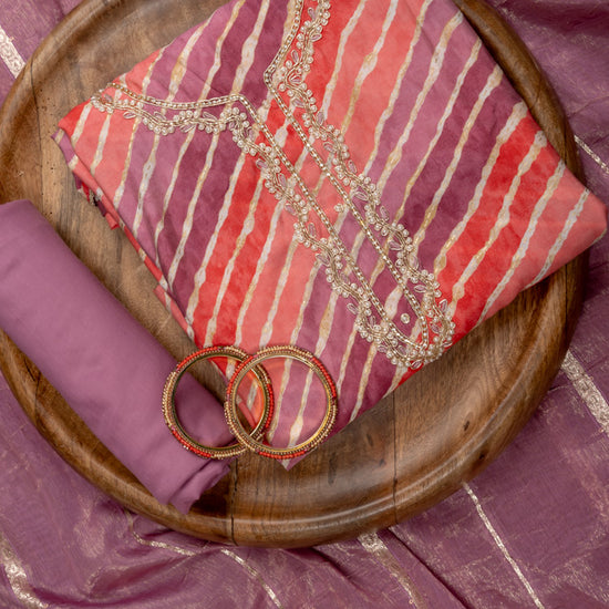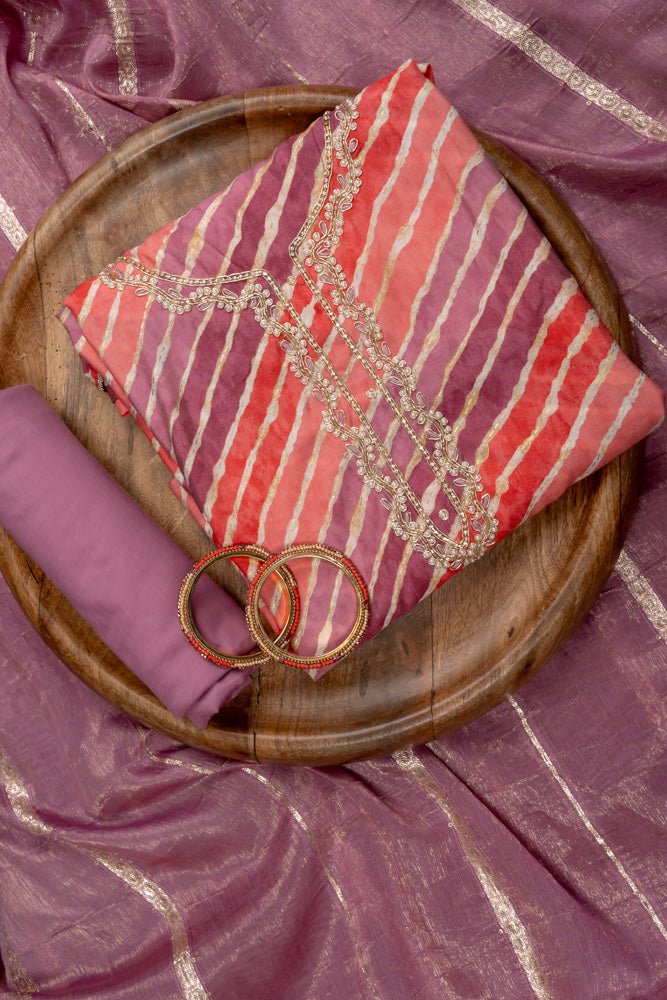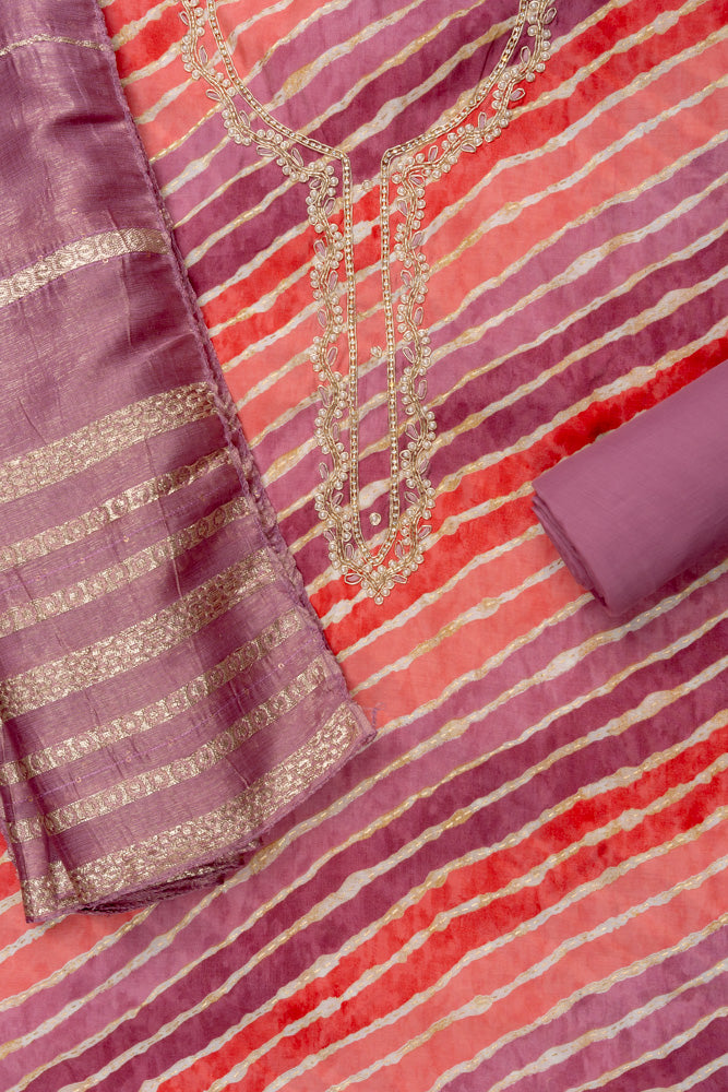 Panna Coral Bead, Sequence, Zari Threadwork & Lehriya Printed Cotton Unstitched Salwar Suit With Cotton Dupatta