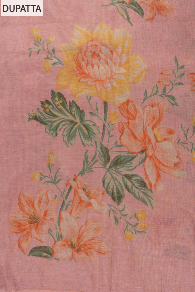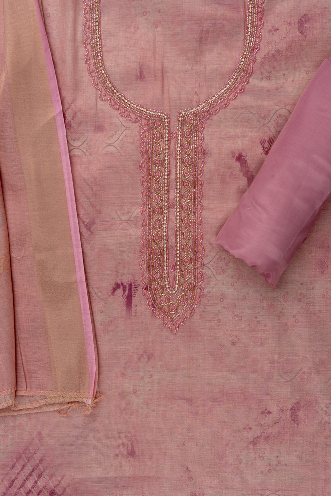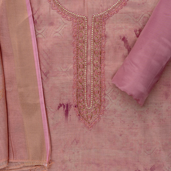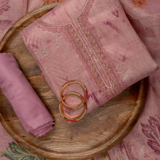 Panna Onion Bead, Cutdana, Sequence, Threadwork, Zarkan & Digital Printed Cotton Unstitched Salwar Suit With Cotton Dupatta