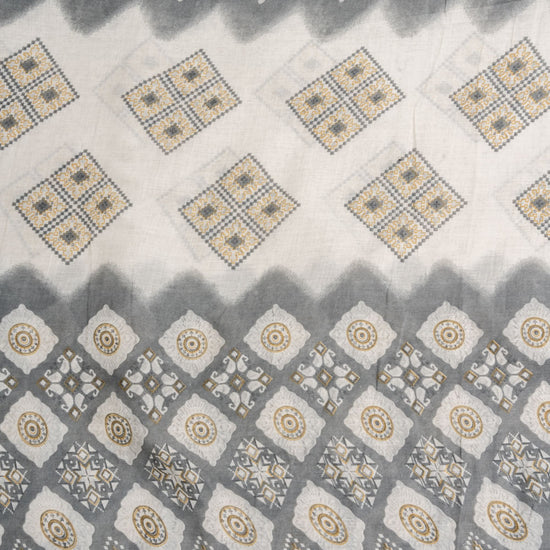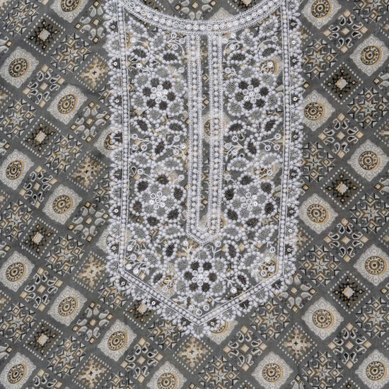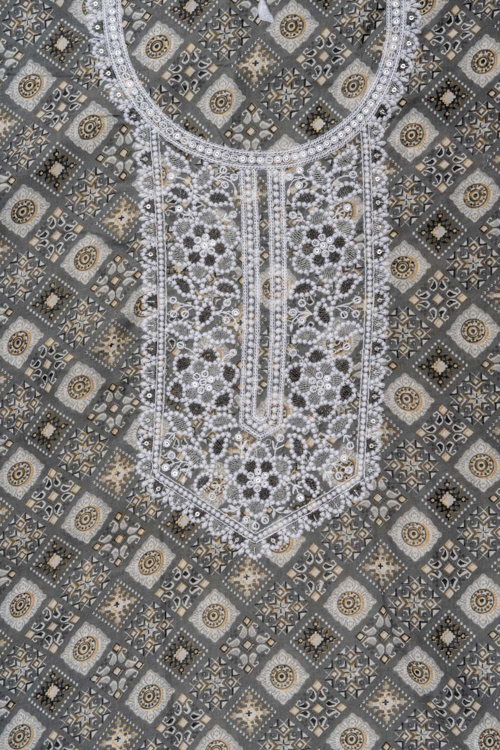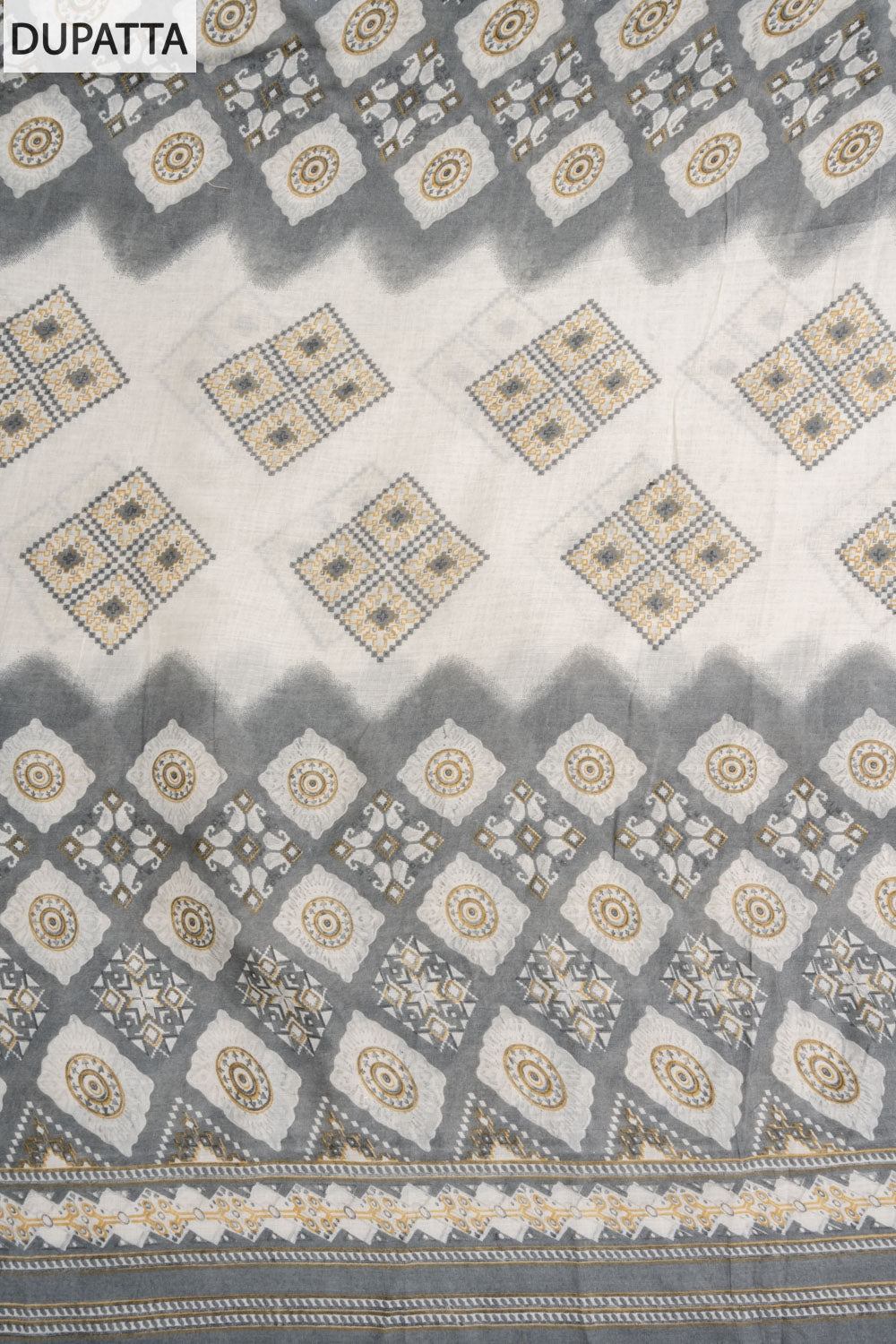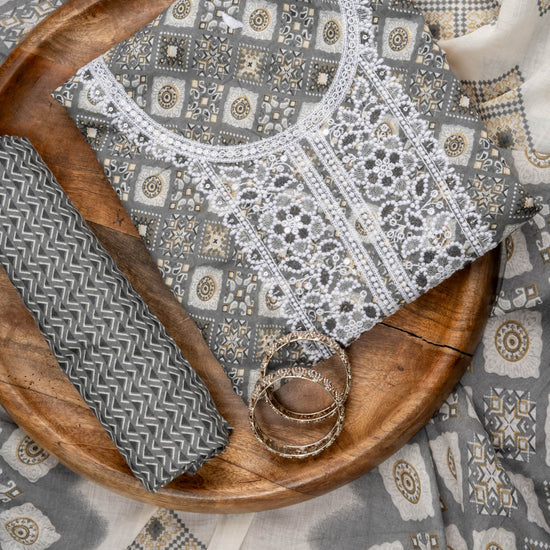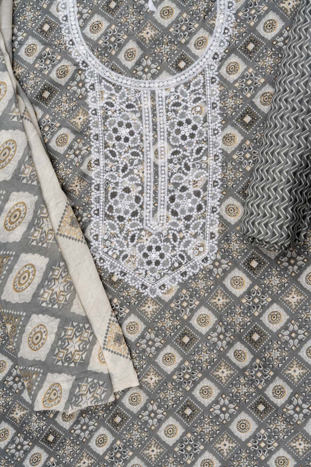 Panna Grey Sequence, Threadwork & Digital Printed Cotton Unstitched Salwar Suit With Cotton Dupatta