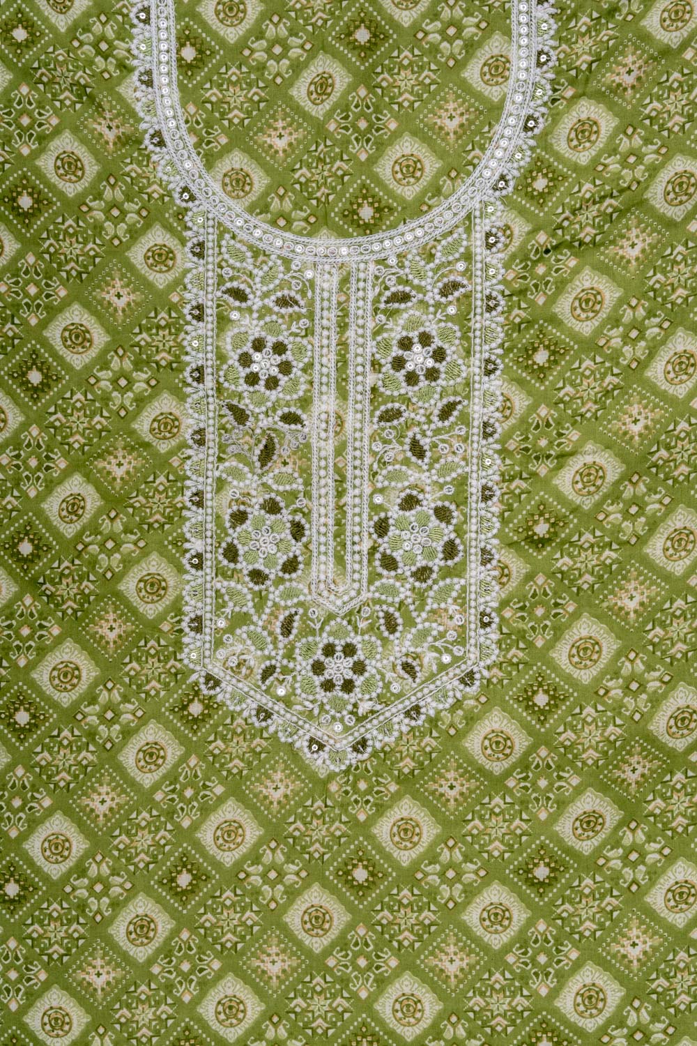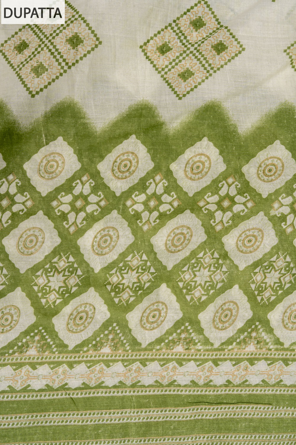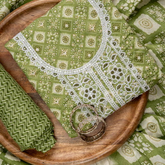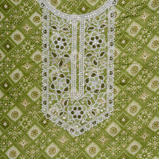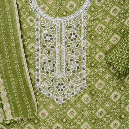 Panna Pista Sequence, Threadwork & Digital Printed Cotton Unstitched Salwar Suit With Cotton Dupatta