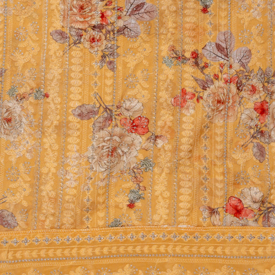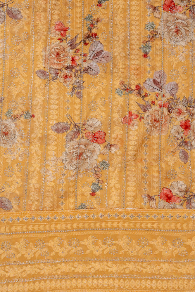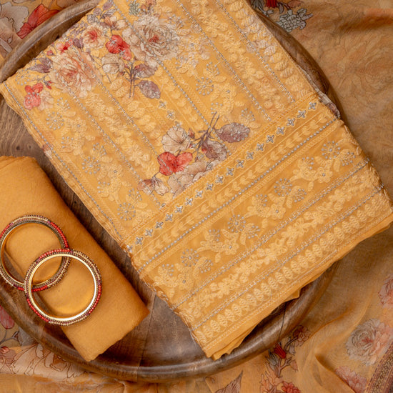 Panna Mango Gold Sequence, Threadwork & Floral Printed Georgette Unstitched Salwar Suit With Georgette Dupatta