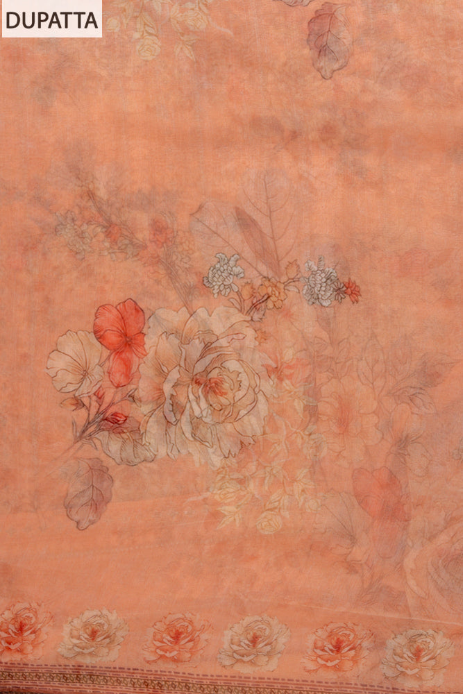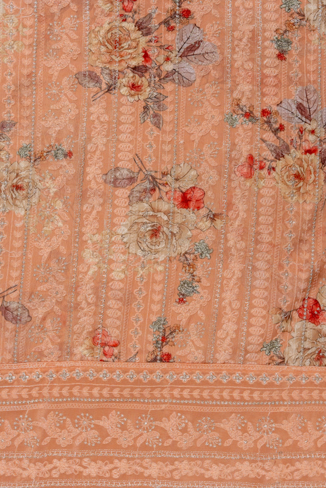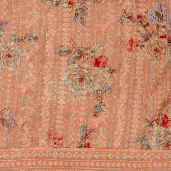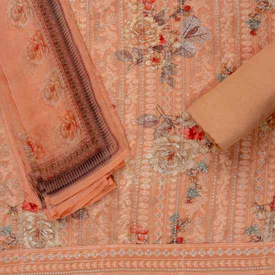Panna Peach Sequence, Threadwork & Floral Printed Georgette Unstitched Salwar Suit With Georgette Dupatta
