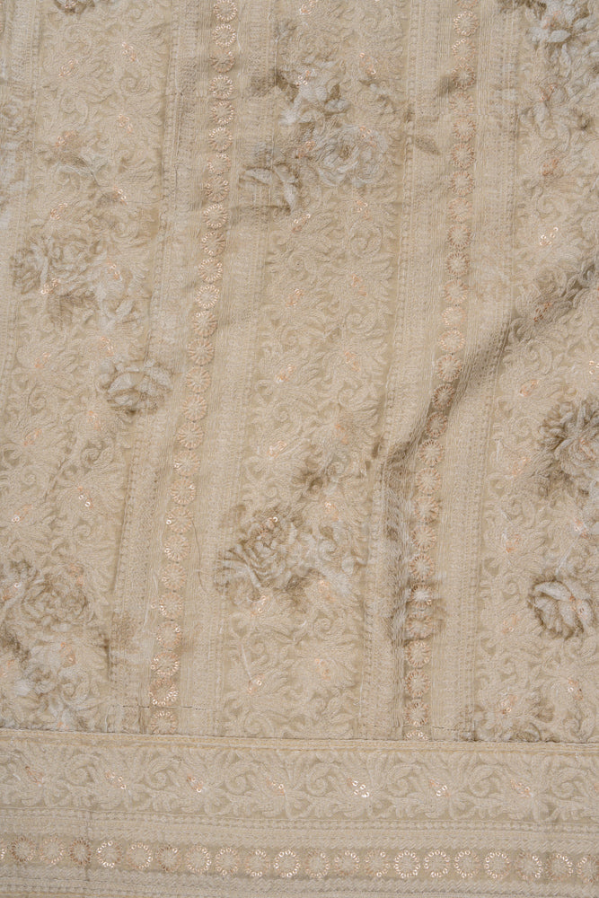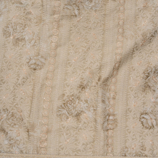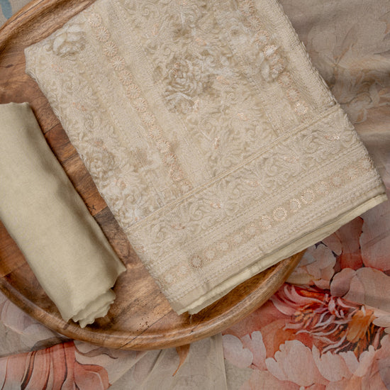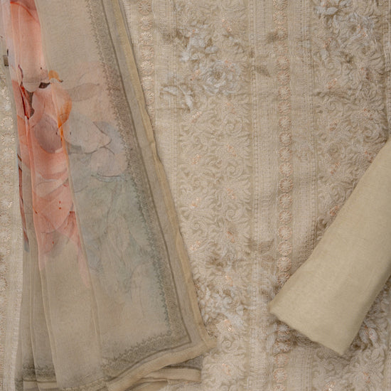 Panna Tussar Sequence, Threadwork & Floral Printed Cotton Unstitched Salwar Suit With Georgette Dupatta