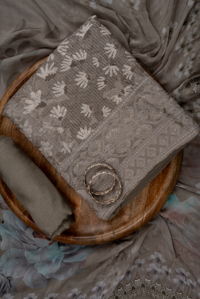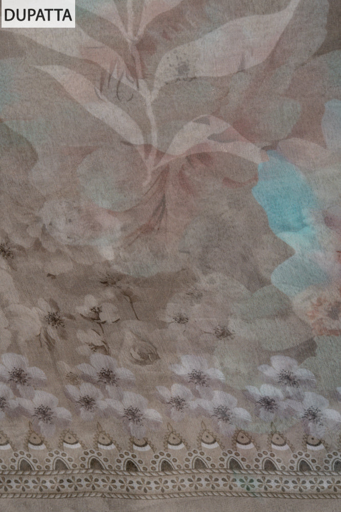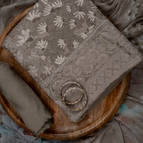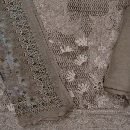 Chikoo Sequence, Threadwork & Floral Printed Georgette Unstitched Salw – The Panna Shop
