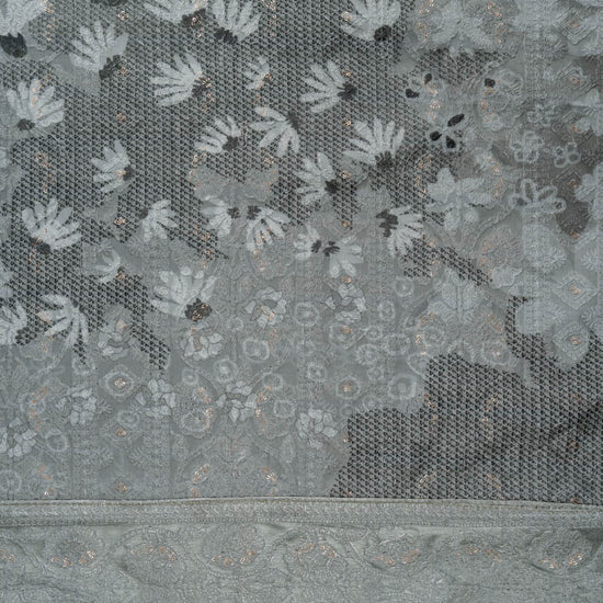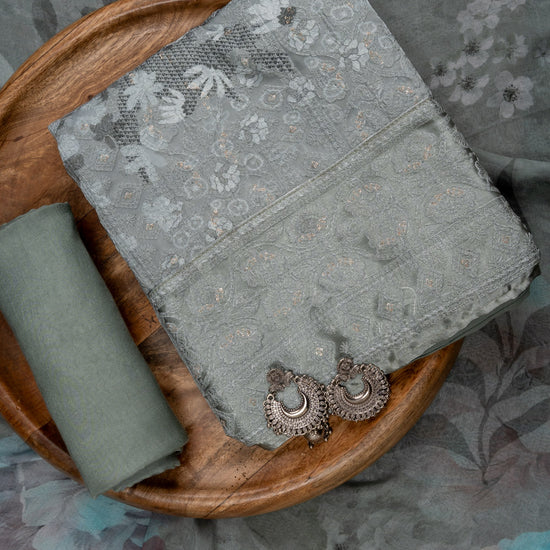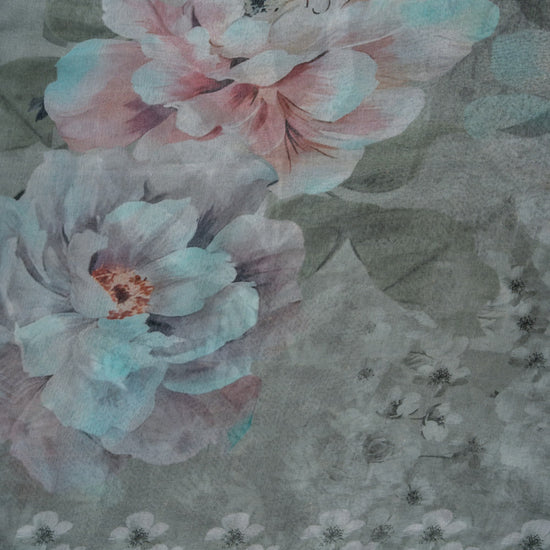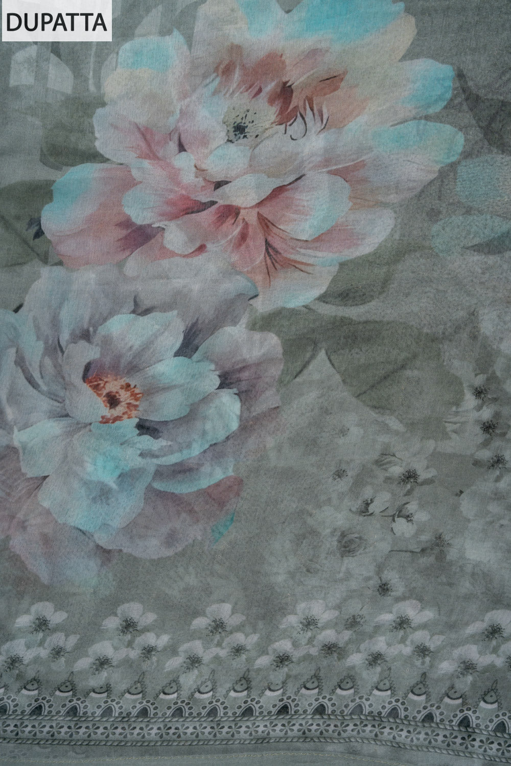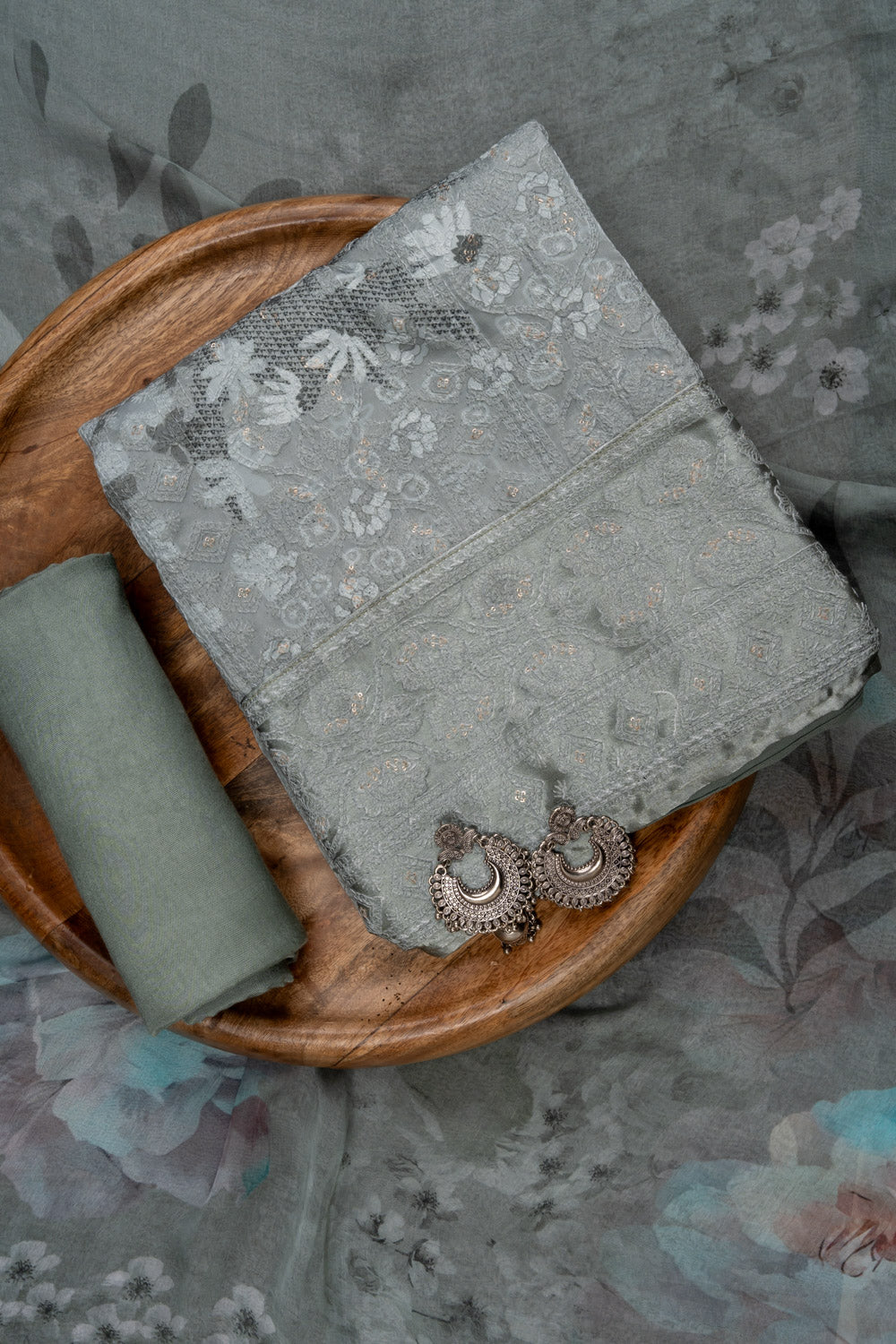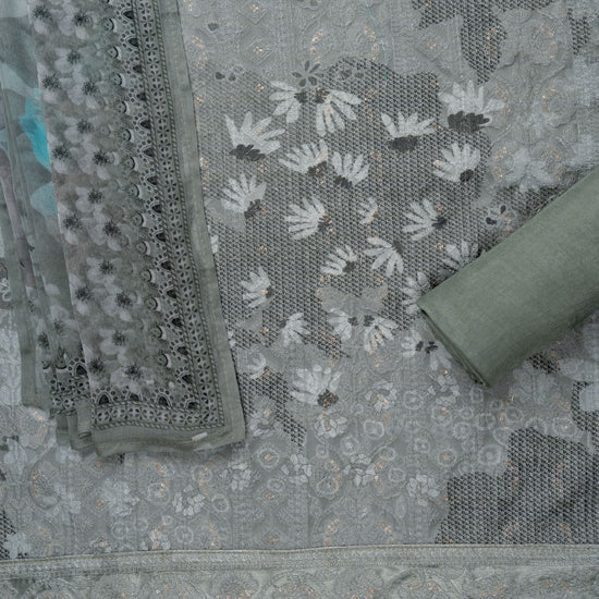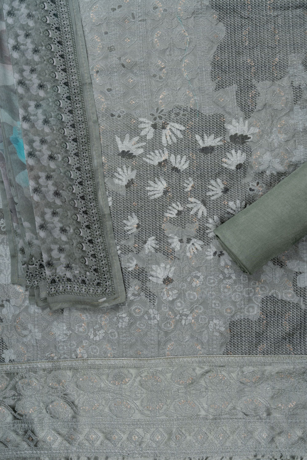 Panna Olive Sequence, Threadwork & Floral Printed Georgette Unstitched Salwar Suit With Georgette Dupatta