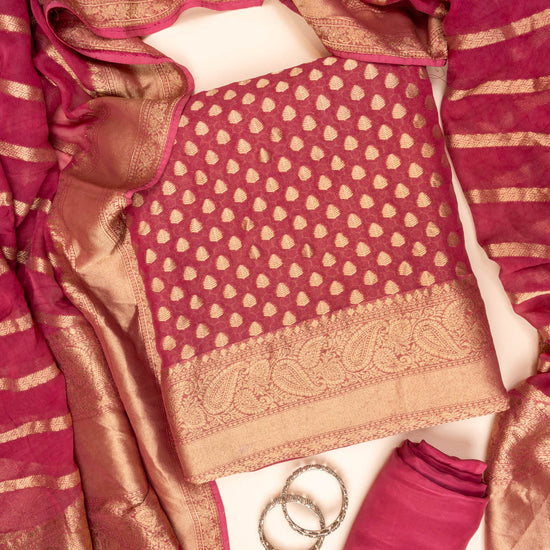Panna Onion Banarasi Woven Zari Khaddi Georgette Unstitched Salwar Suit With Georgette dupatta