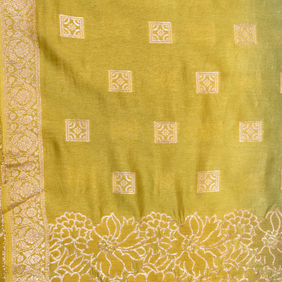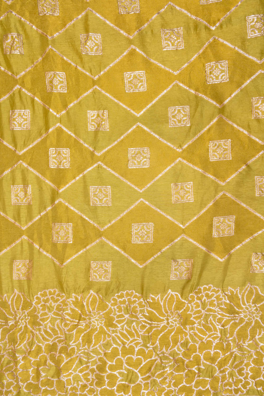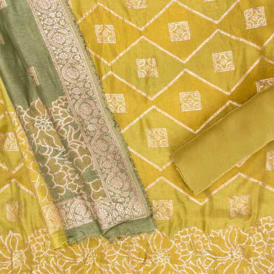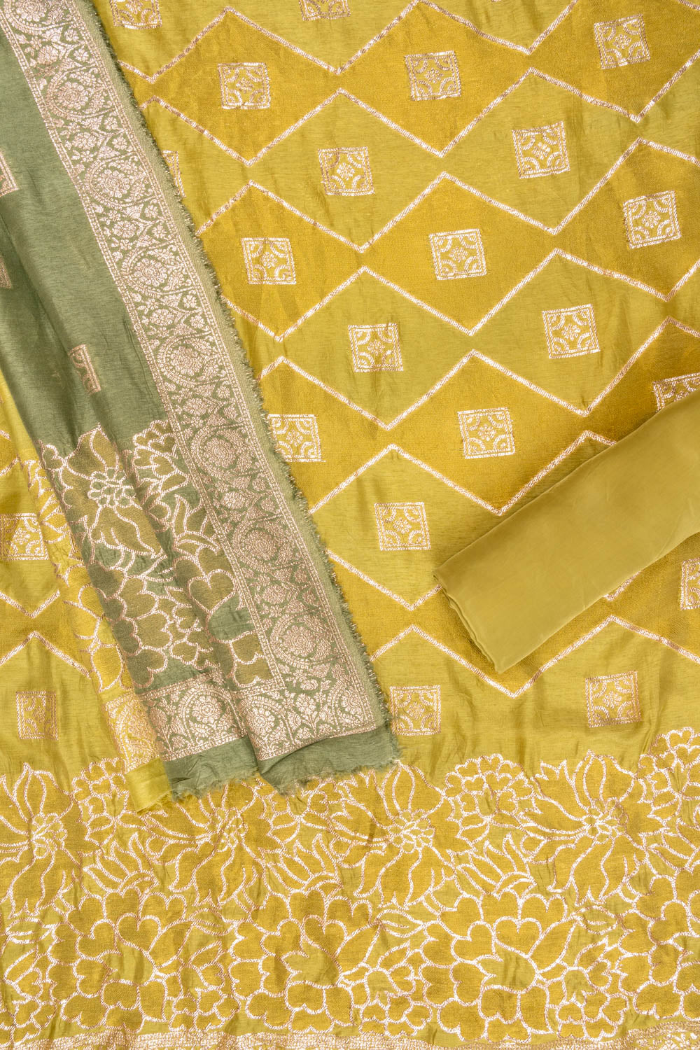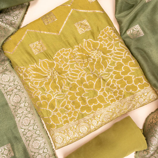 Panna Pista Woven Zari Cotton Unstitched Salwar Suit With Cotton Dupatta
