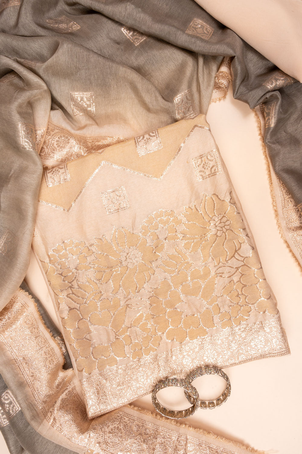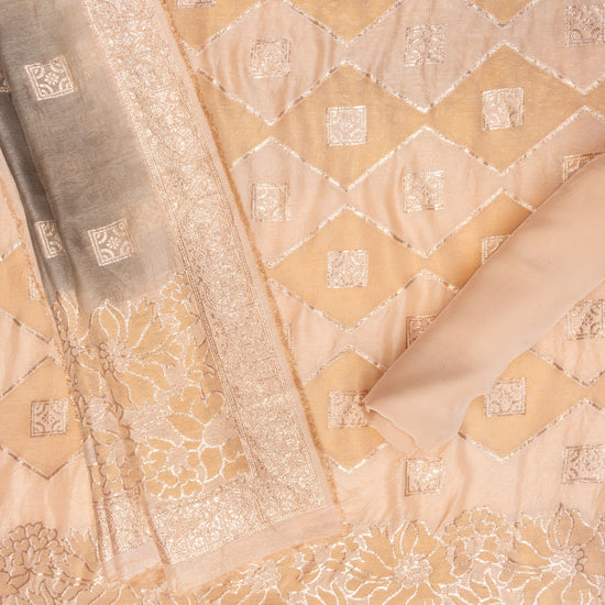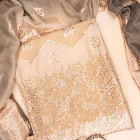 Panna Tussar Woven Zari Cotton Unstitched Salwar Suit With Cotton Dupatta