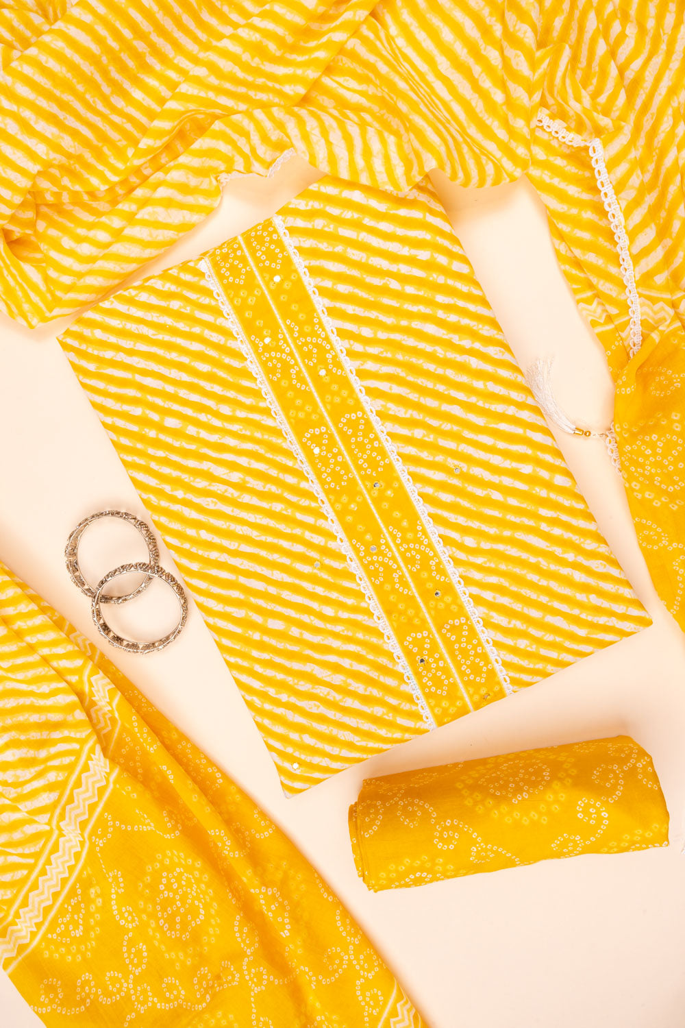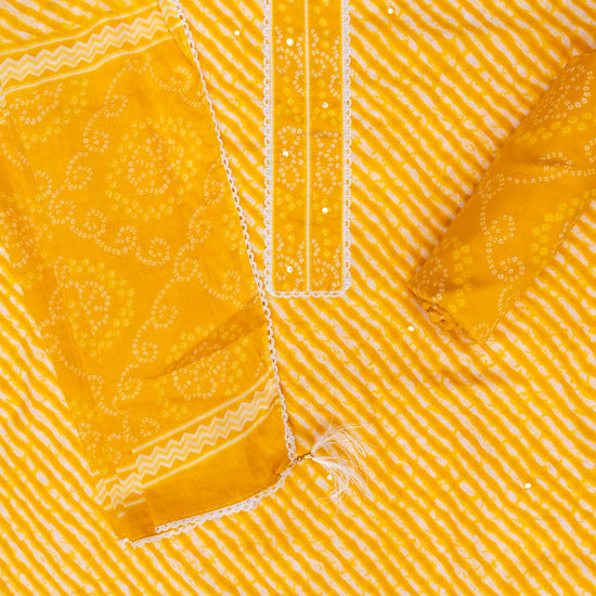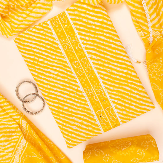Panna Mango Gold Lehriya Printed Cotton Unstitched Salwar Suit With Cotton Dupatta