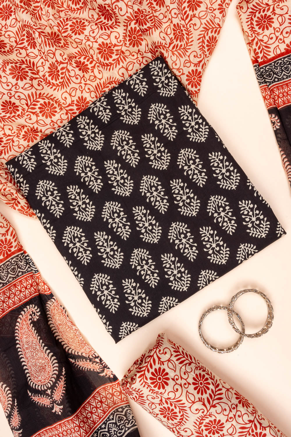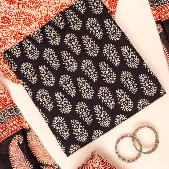 Black Digital Printed Cotton Unstitched Salwar Suit With Cotton Dupatt – The Panna Shop