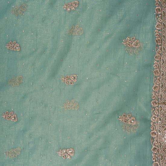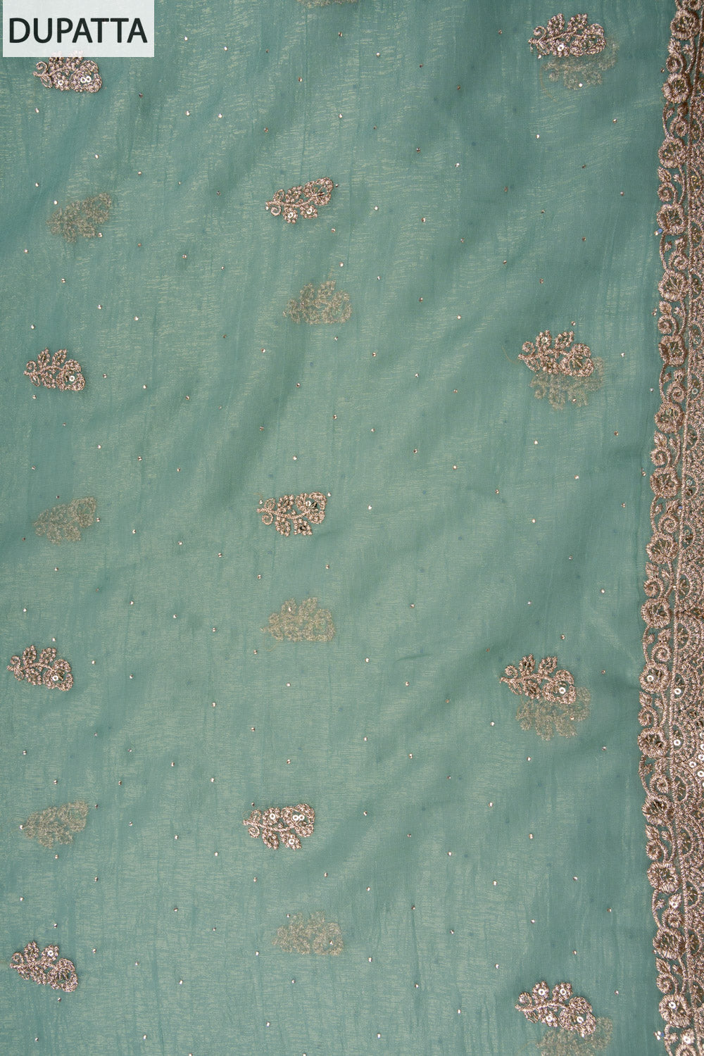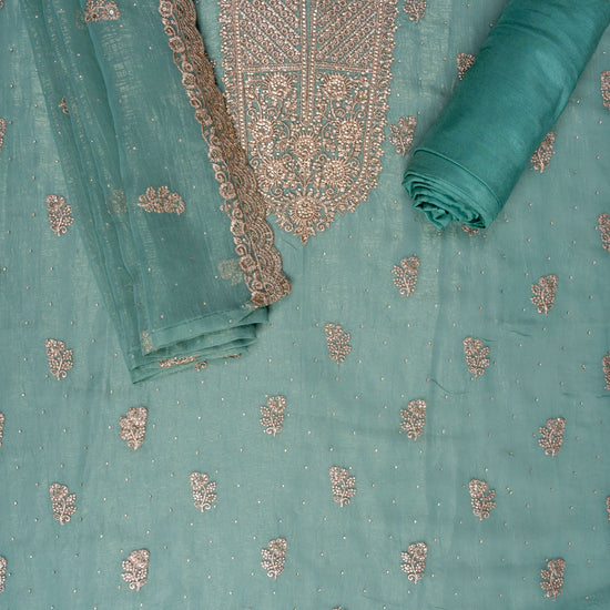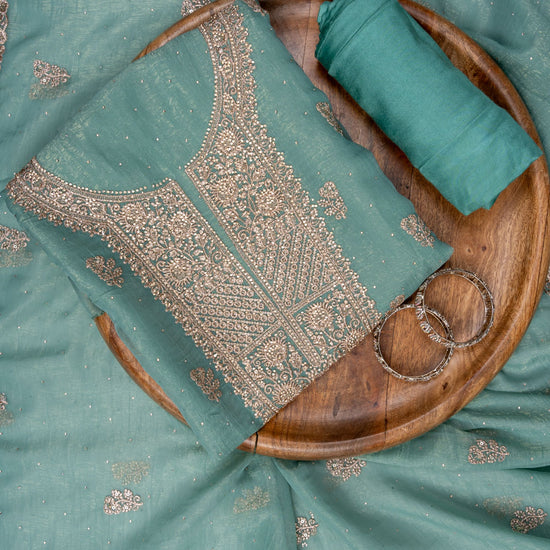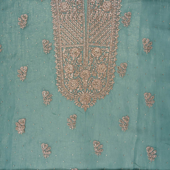 Panna Mint Green Swarovski, Zarkan & Zari Threadwork Shimmer Unstitched Salwar Suit With Shimmer Dupatta