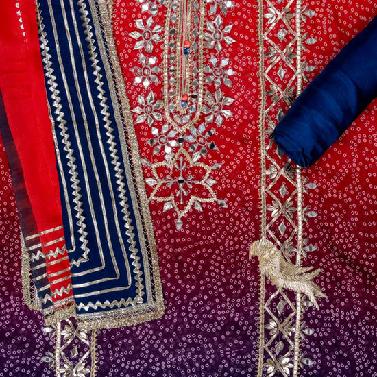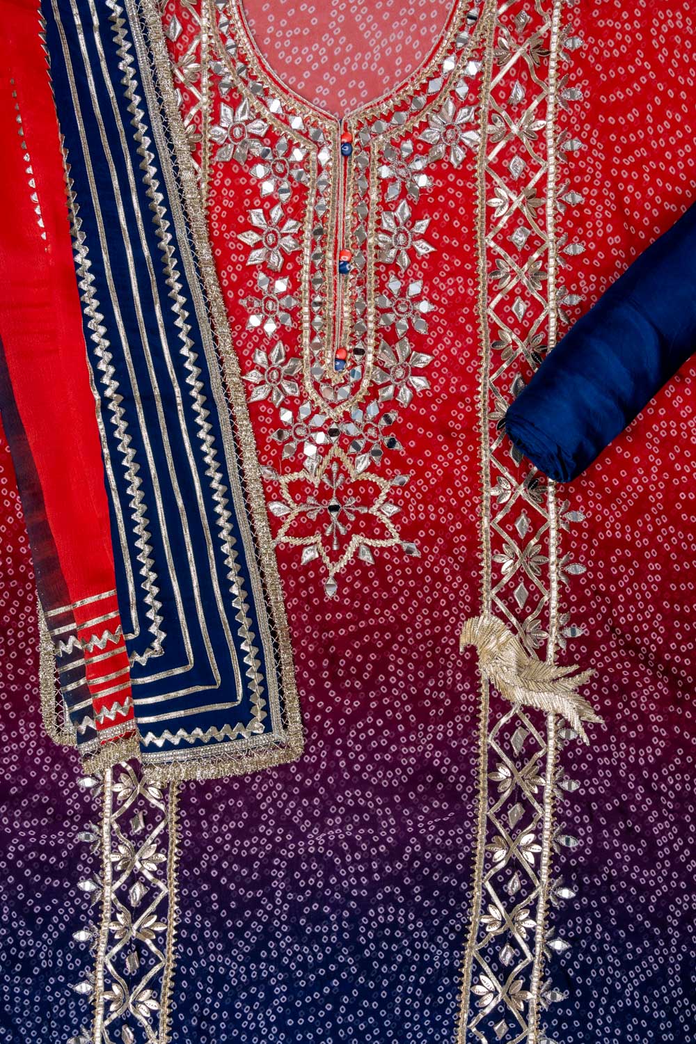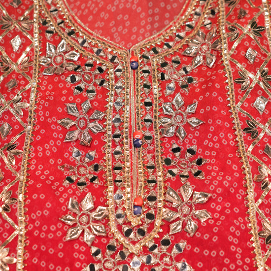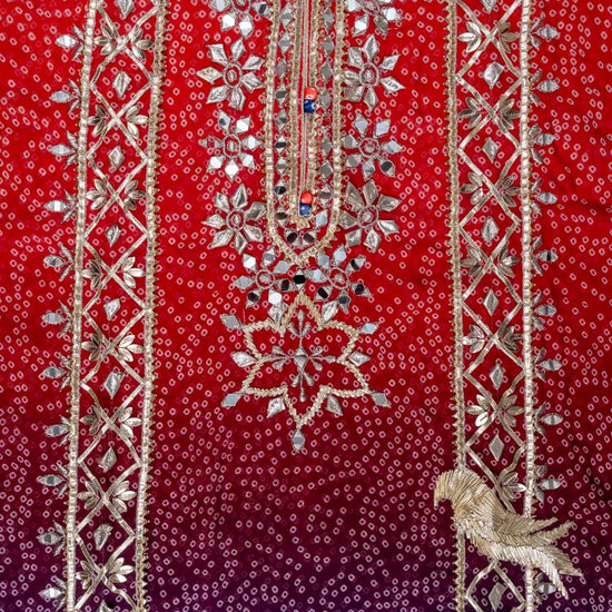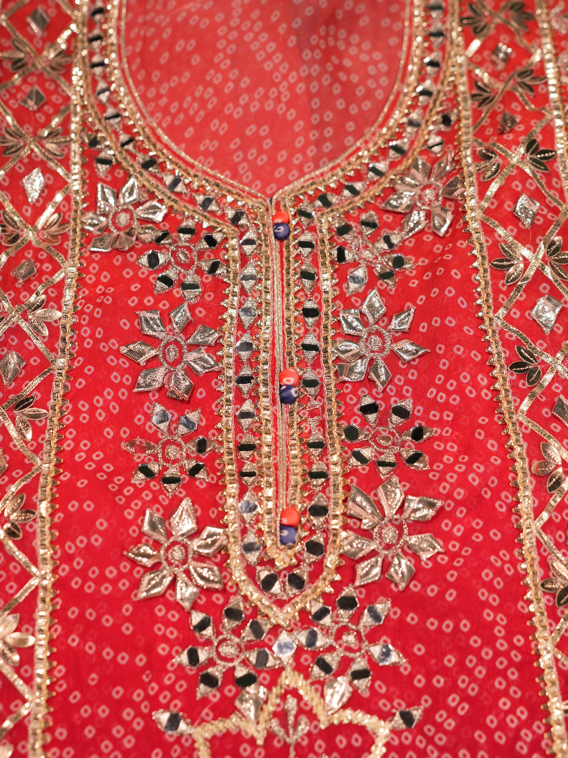 Red Gotta Patti, Mirror, Zarkan & Bandhini Printed Organza Unstitched – The Panna Shop