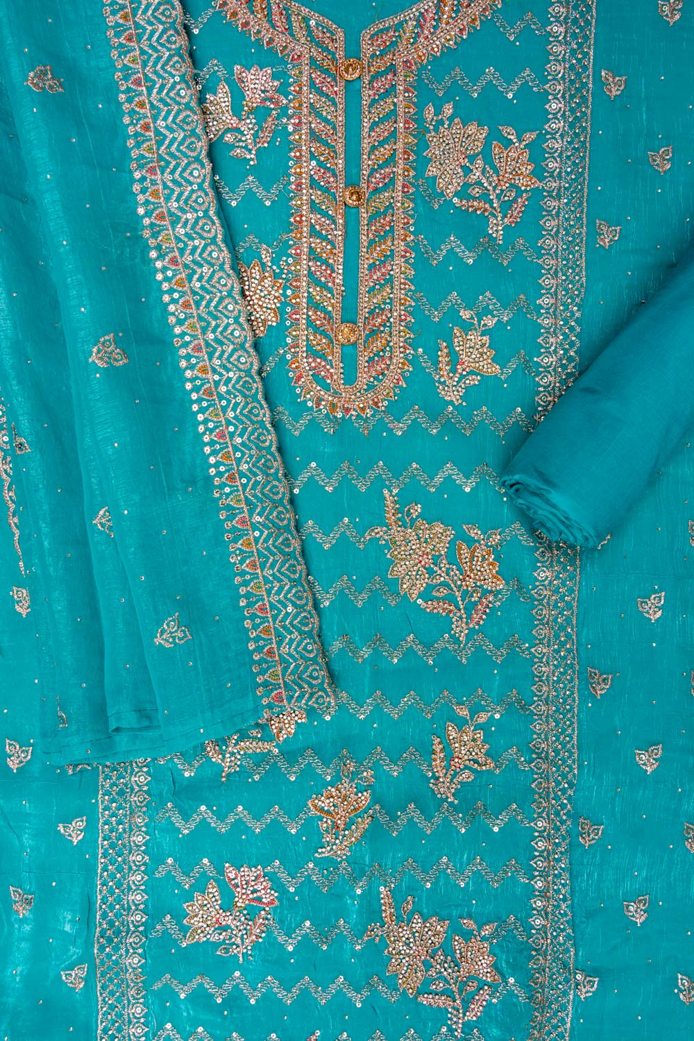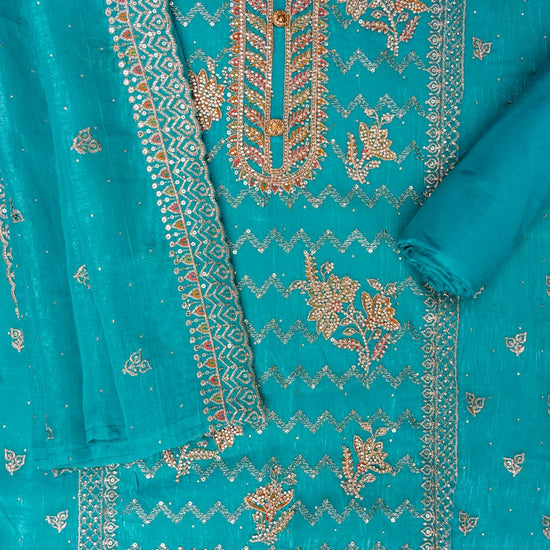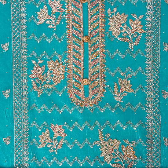 Panna Rama Sequence, Swarovski, Zarkan & Zari Threadwork Georgette Unstitched Salwar Suit With Georgette Dupatta