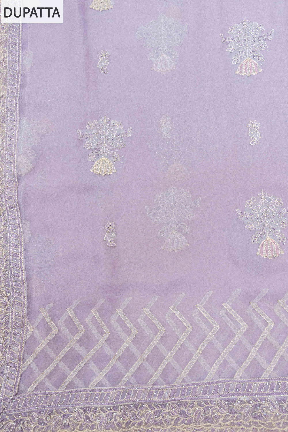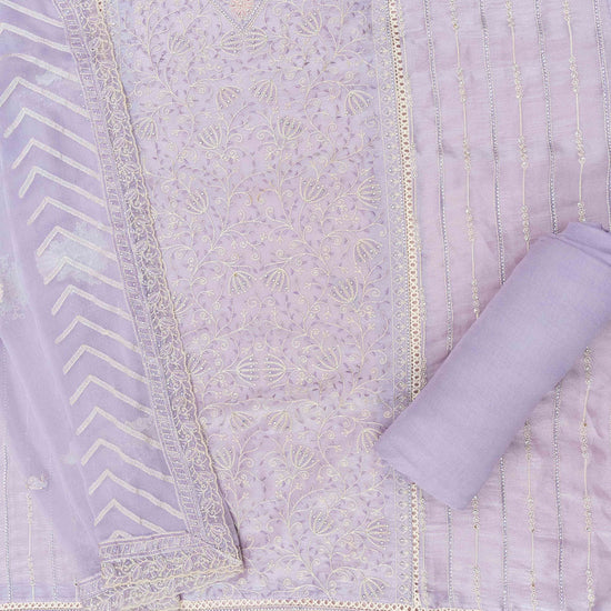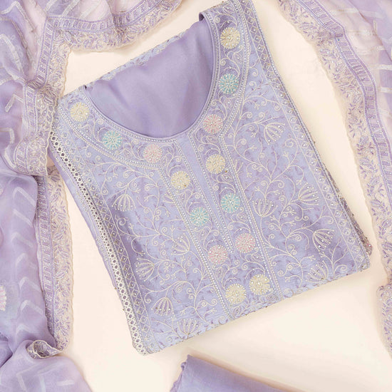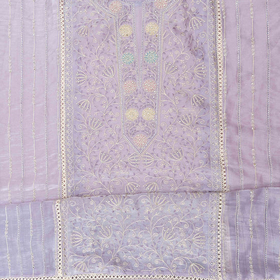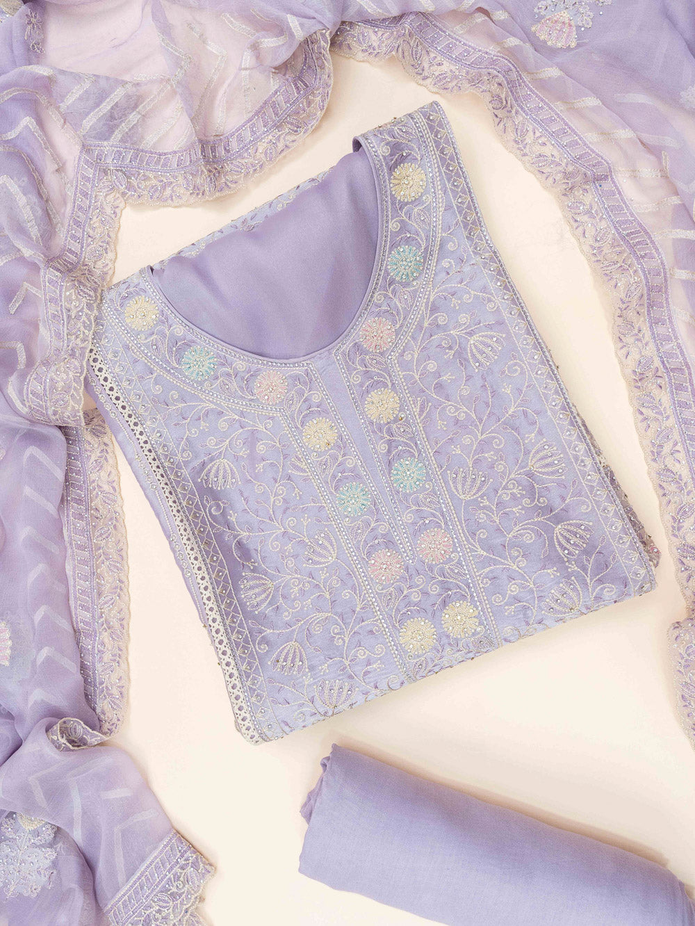 Panna Mauve Swarovski, Zarkan & Threadwork Organza Unstitched Salwar Suit With Chiffon Dupatta