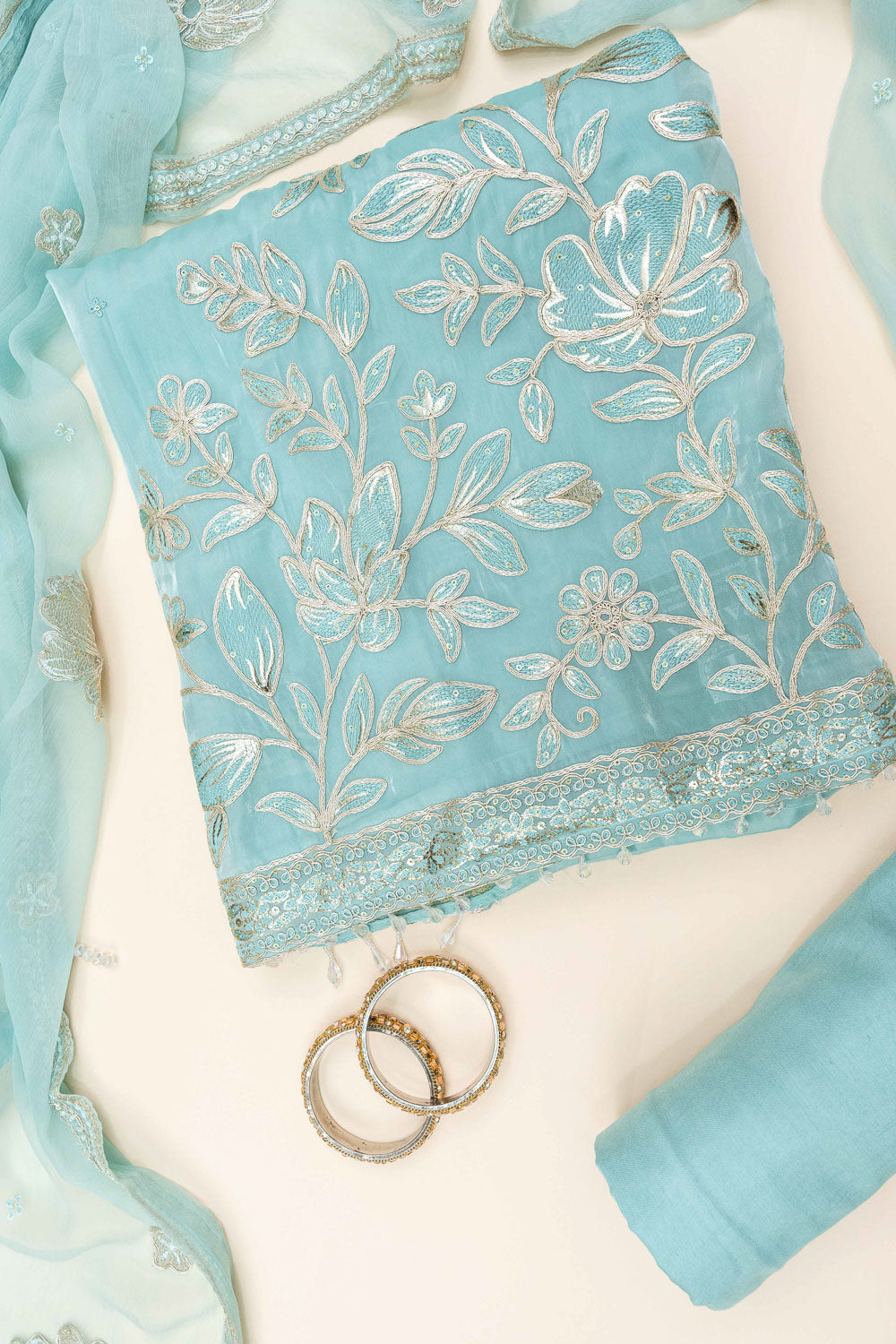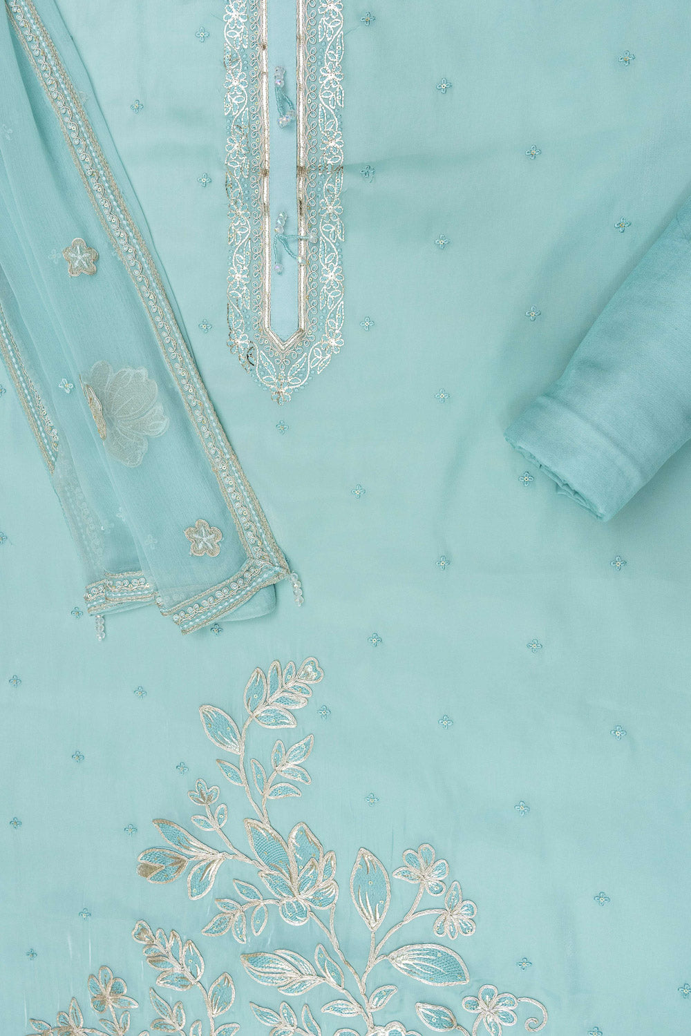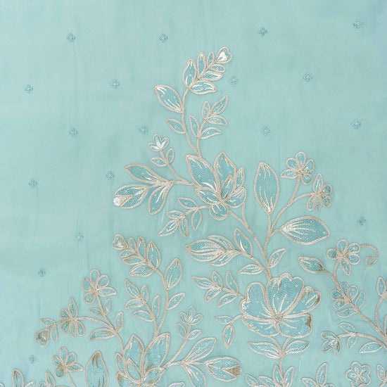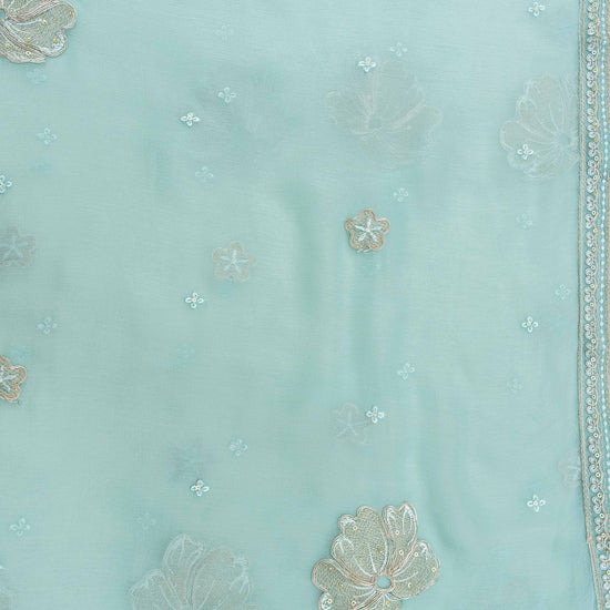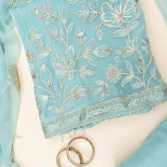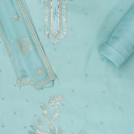 Panna Tea Green Bead, Sequence & Zari Threadwork Organza Unstitched Salwar Suit With Chiffon Dupatta