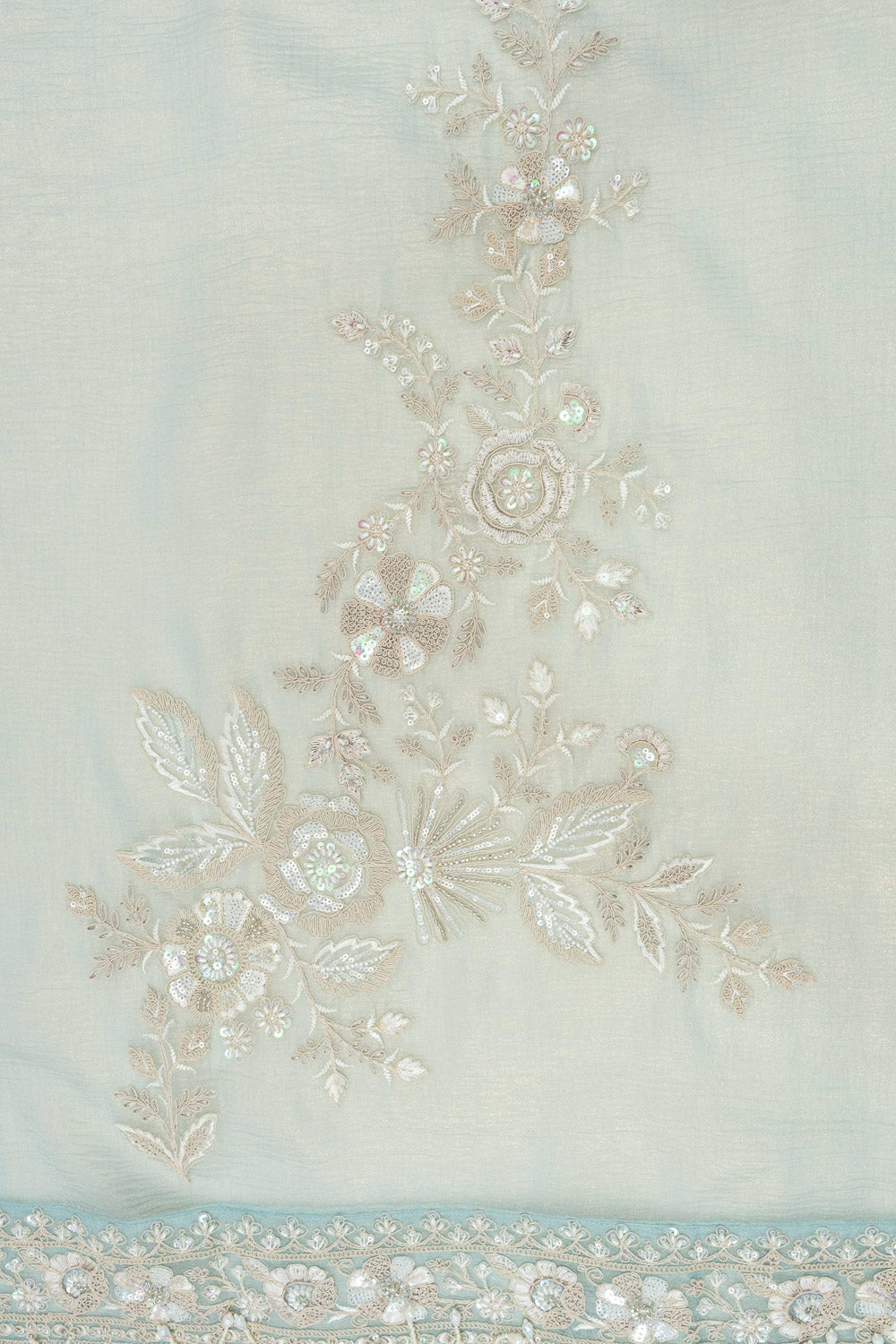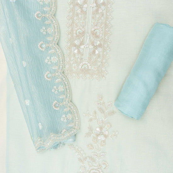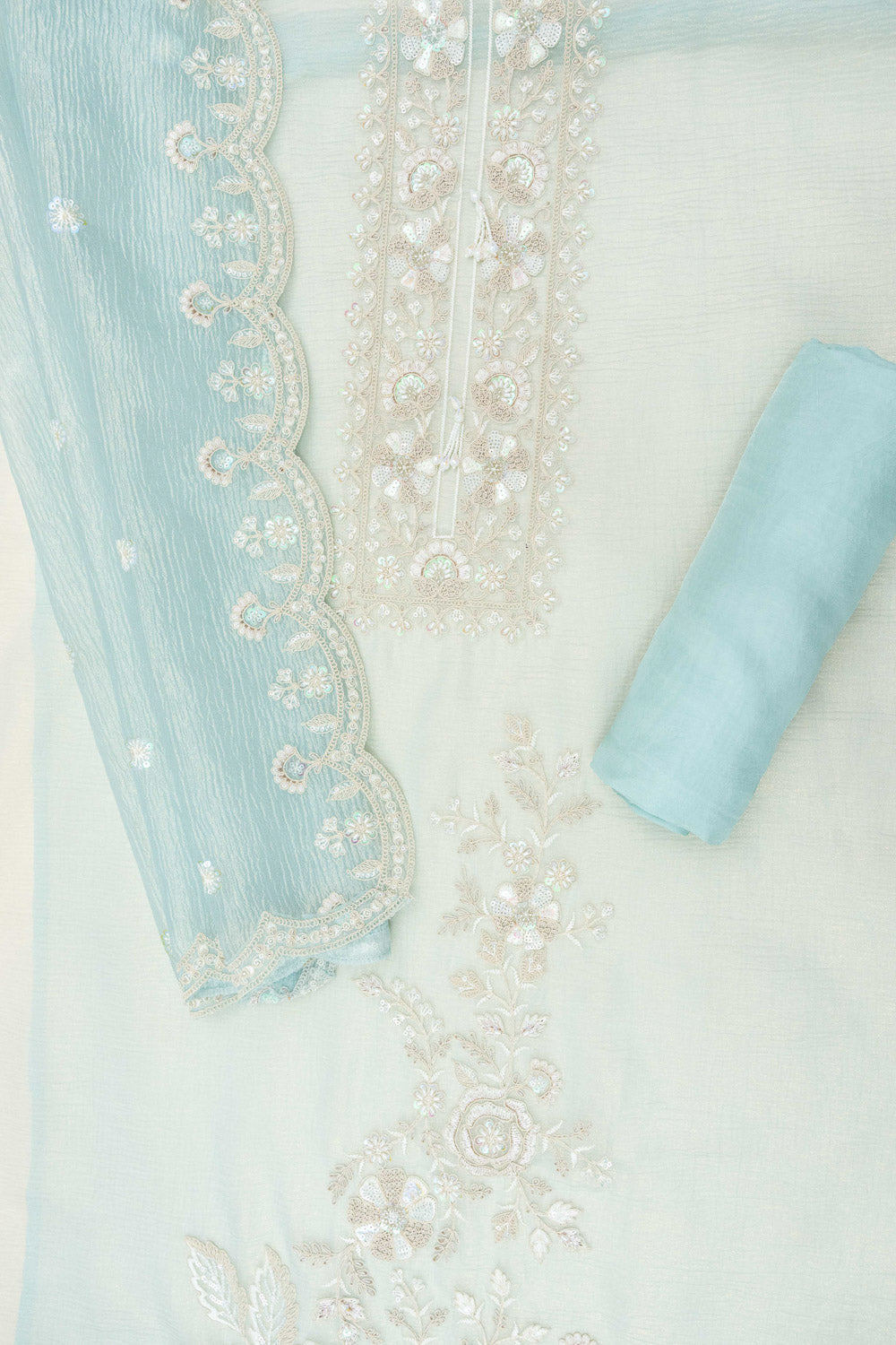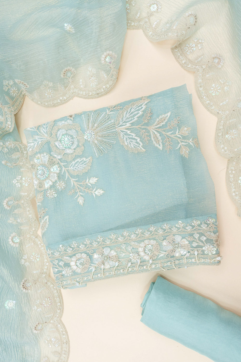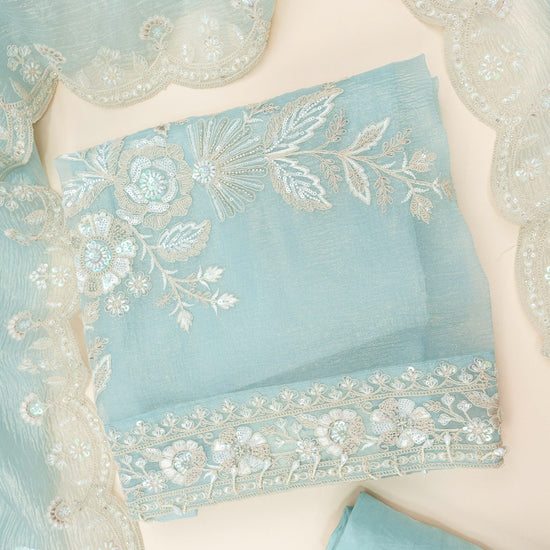Panna Sky Blue Bead, Sequence & Zari Threadwork Organza Unstitched Salwar Suit With Organza Dupatta