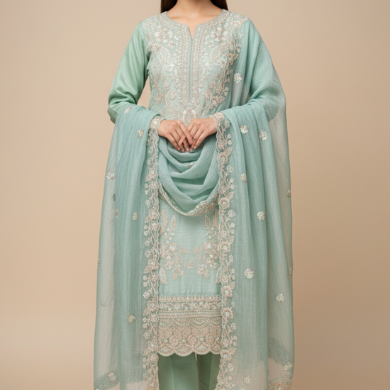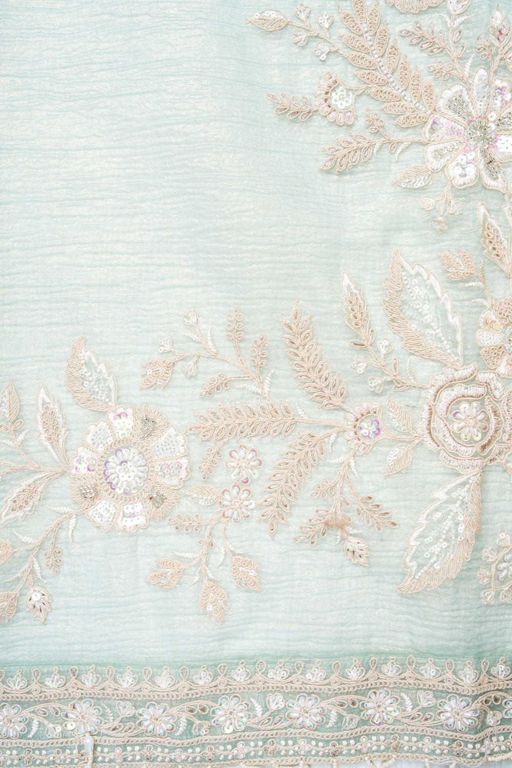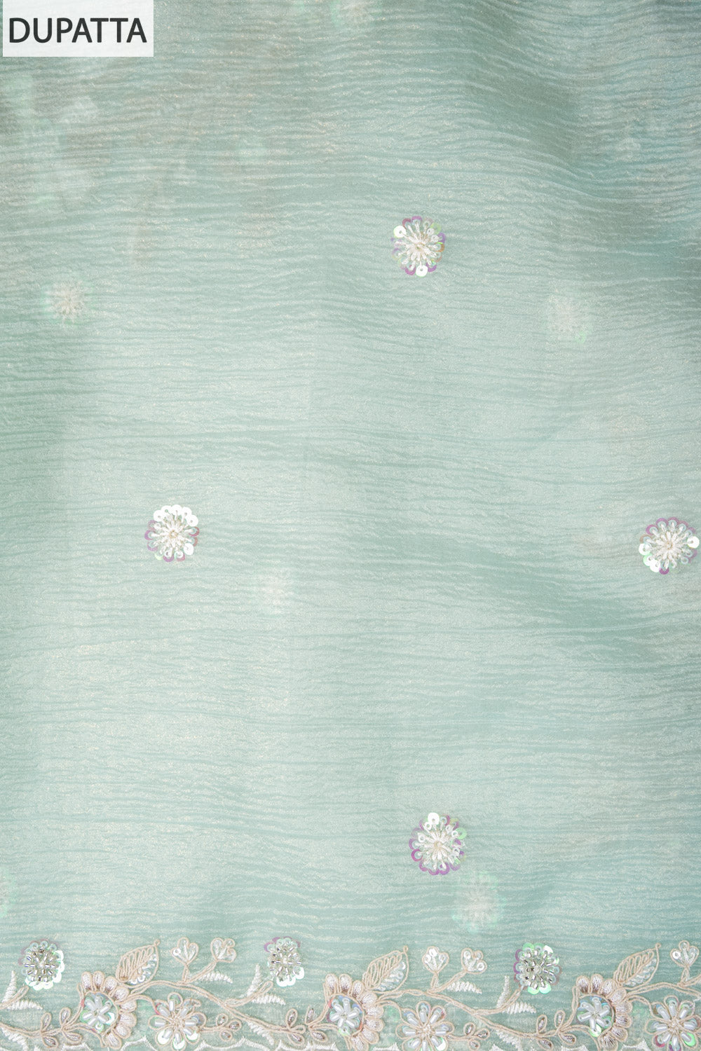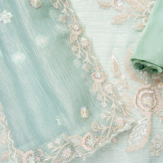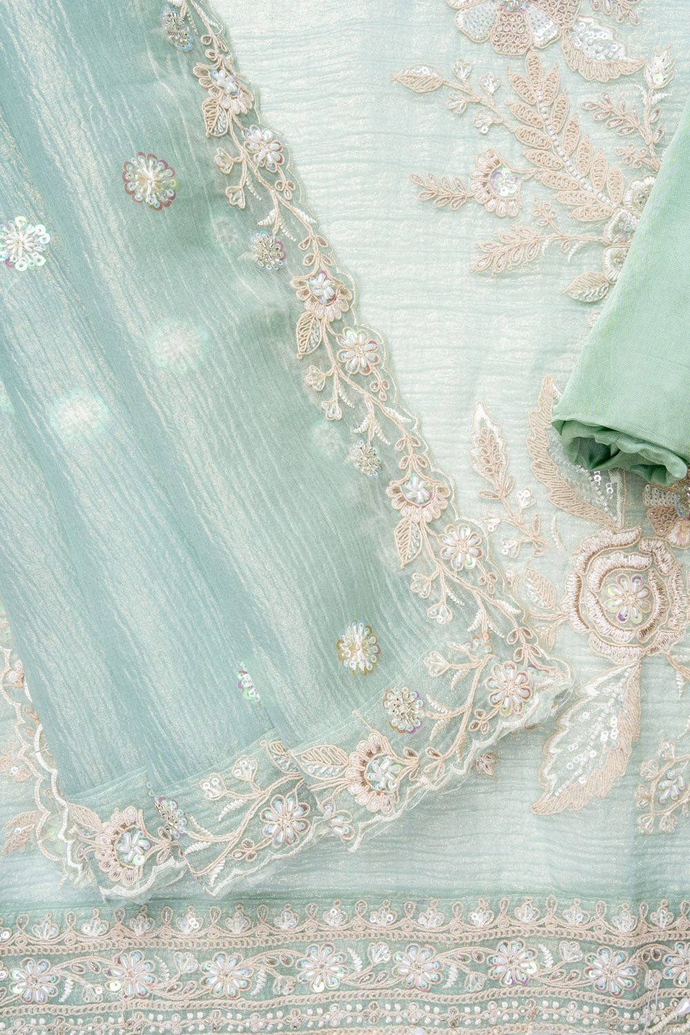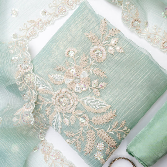 Panna Pista Organza Unstitched Salwar Suit With Organza Dupatta