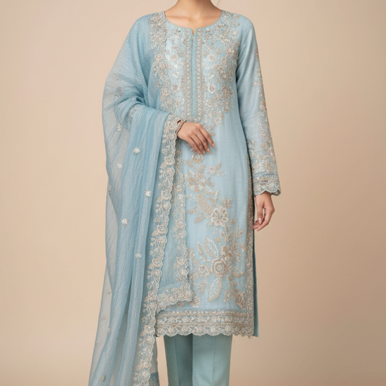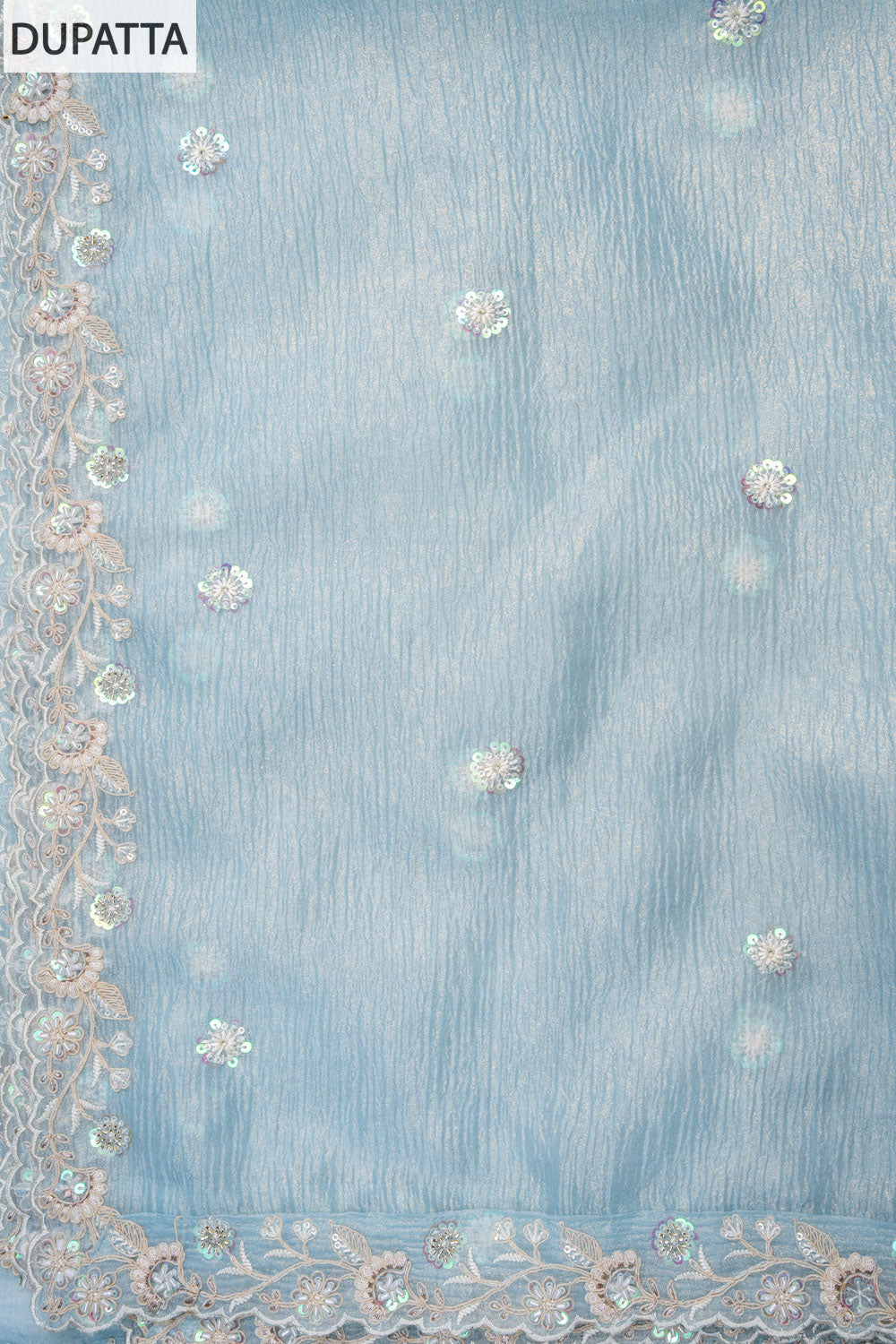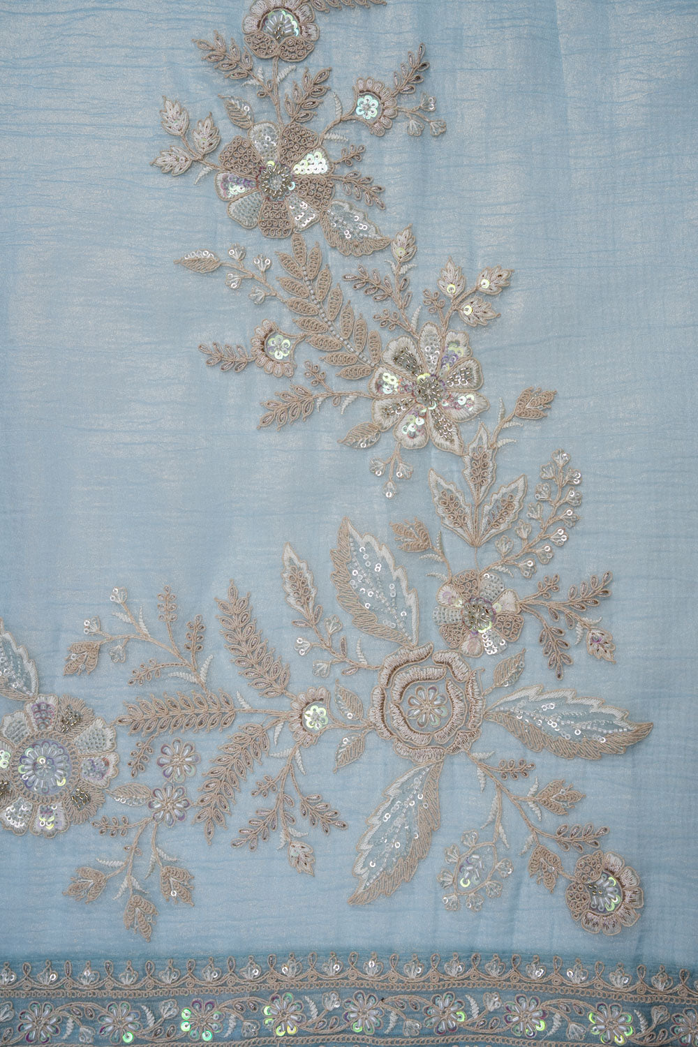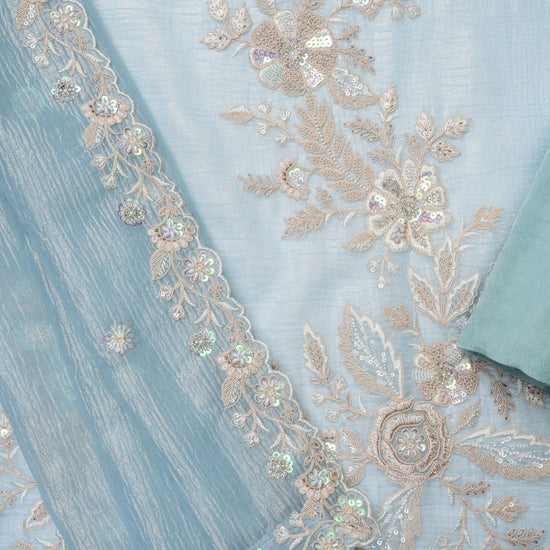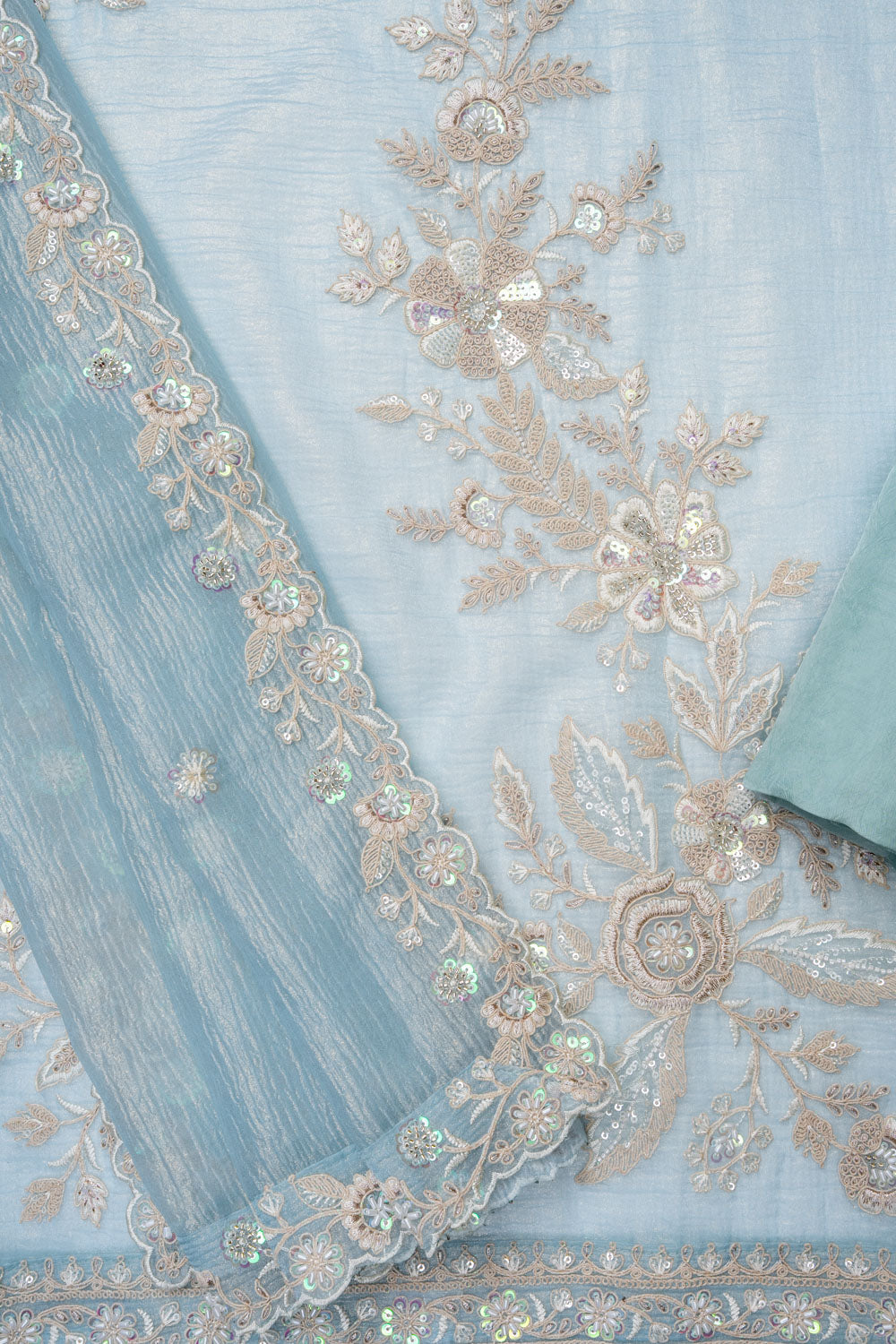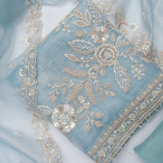 Panna Sky Blue Organza Unstitched Salwar Suit With Organza Dupatta