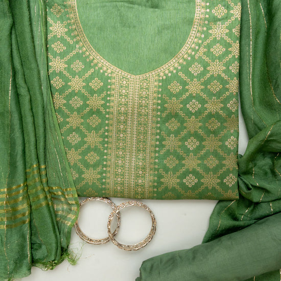 Panna Celebrate tradition in Mehndi Cotton Unstitched Salwar Kameez With Cotton Dupatta