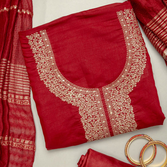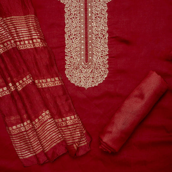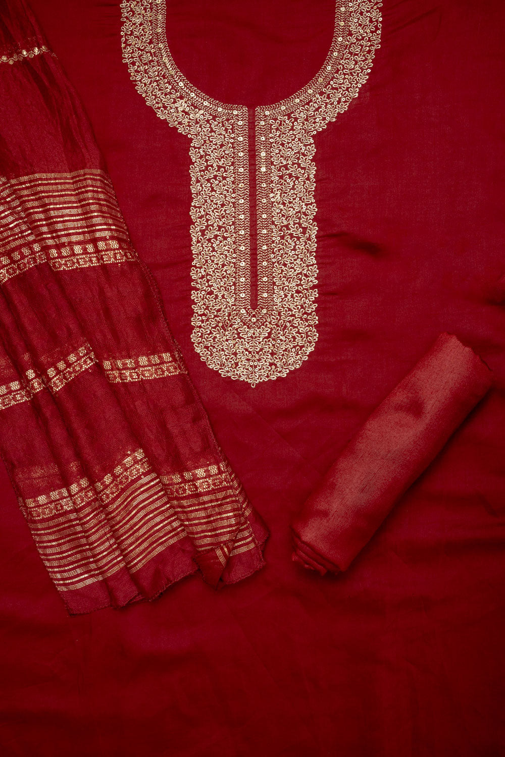Panna Heritage Heirloom Maroon Cotton Unstitched Salwar Kameez With Cotton Dupatta