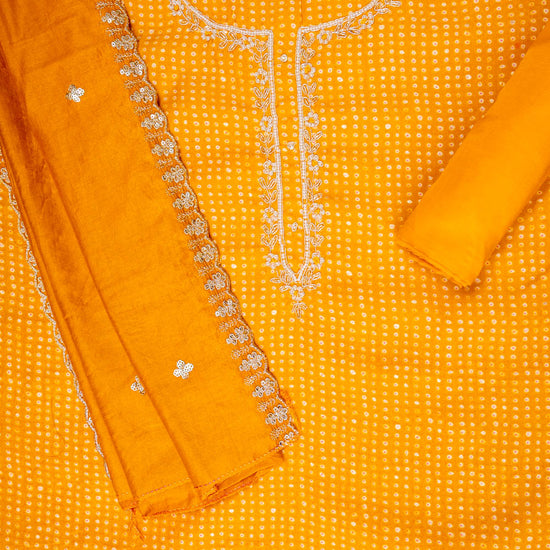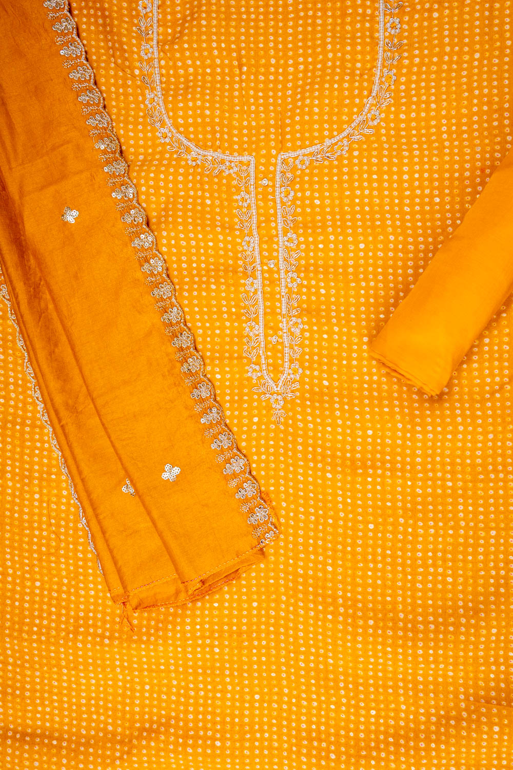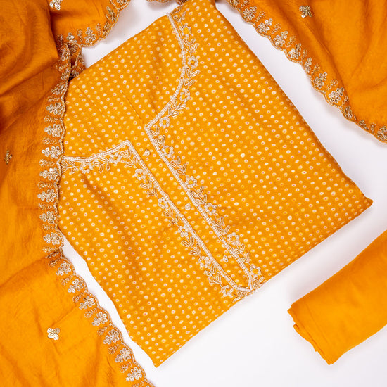 Mustard Dola Unstitched Salwar Suit With Cotton Dupatta