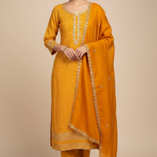 Mustard Dola Unstitched Salwar Suit With Cotton Dupatta – The Panna Shop