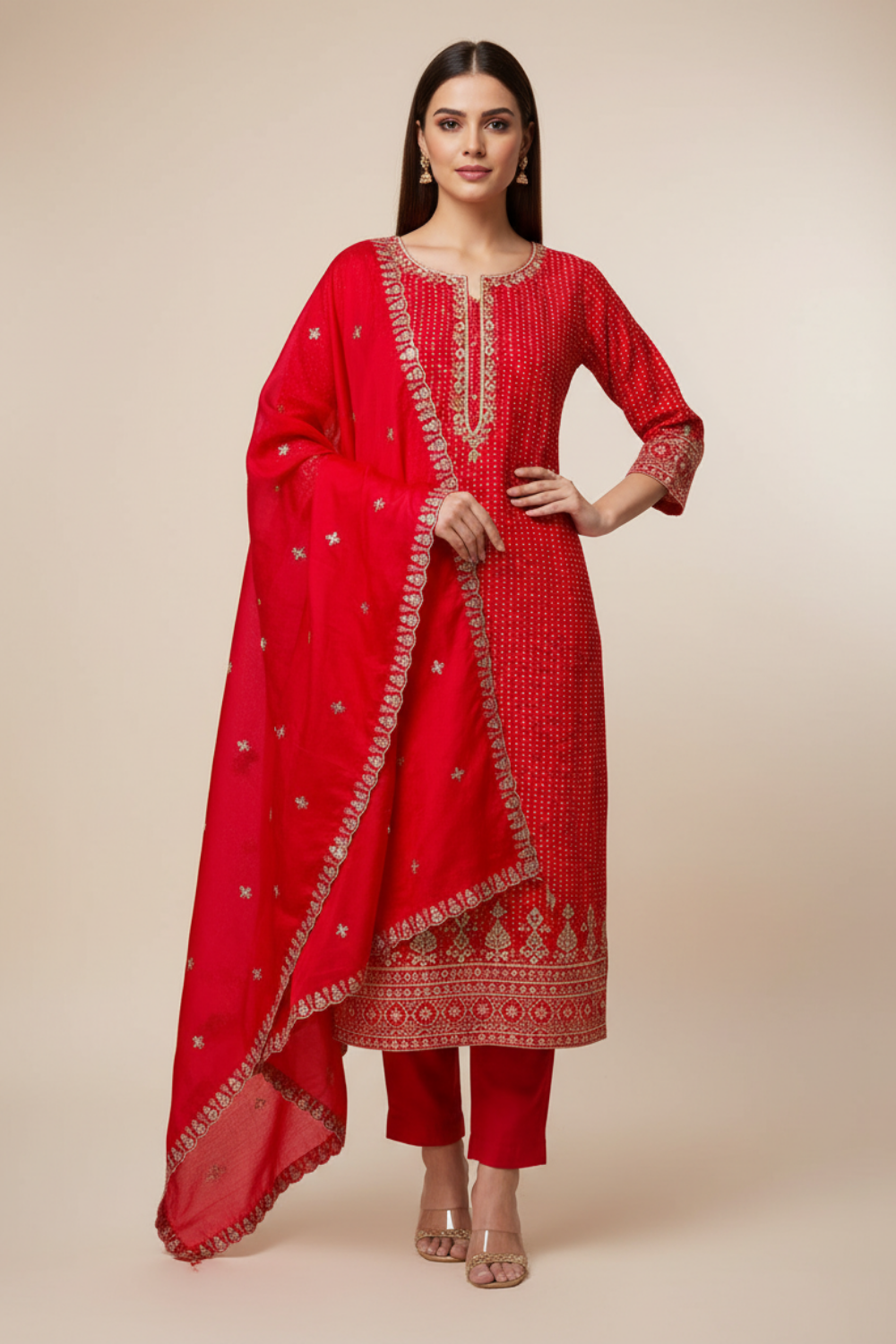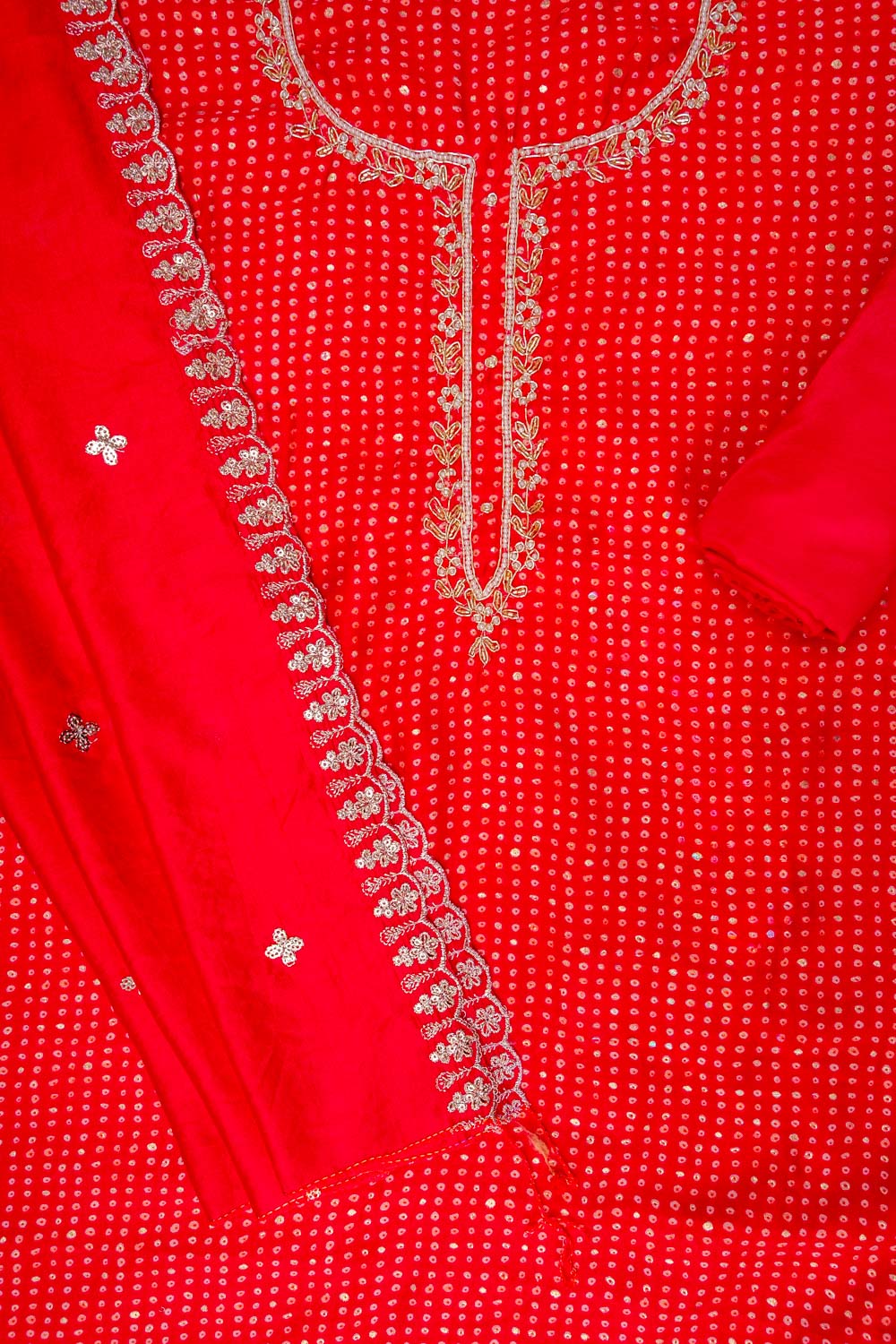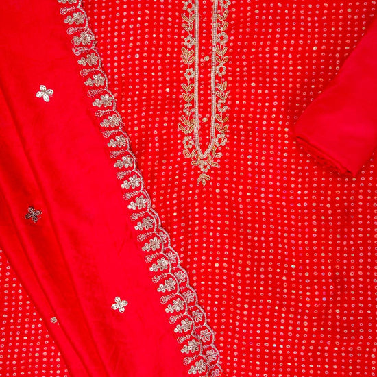 Highlighted by intricate Bandhini Print, Bead, Cutdana, Digital Print, Dabka, Sequence, Threadwork & Zari Threadwork, this unstitched suit is crafted from Dola for Formal occasions. Color Variations enhance its appeal. Maintain with Dry Wash / Dry Clean.