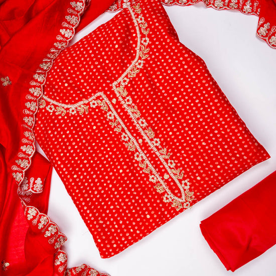 Red Dola Unstitched Salwar Suit With Cotton Dupatta