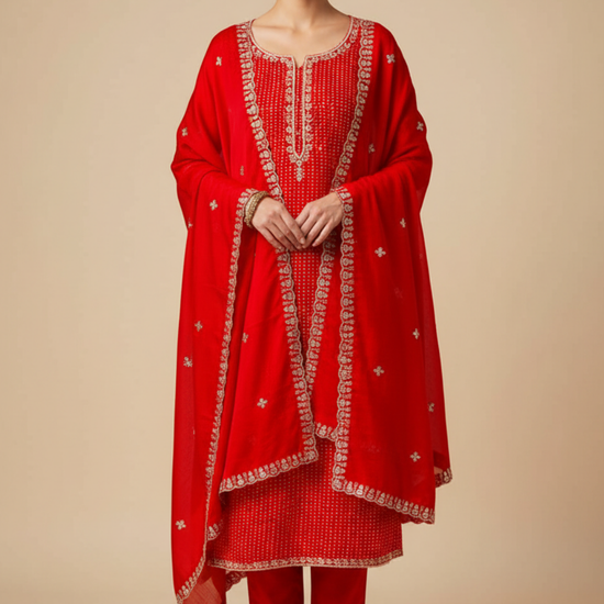 Red Dola Unstitched Salwar Suit With Cotton Dupatta – The Panna Shop