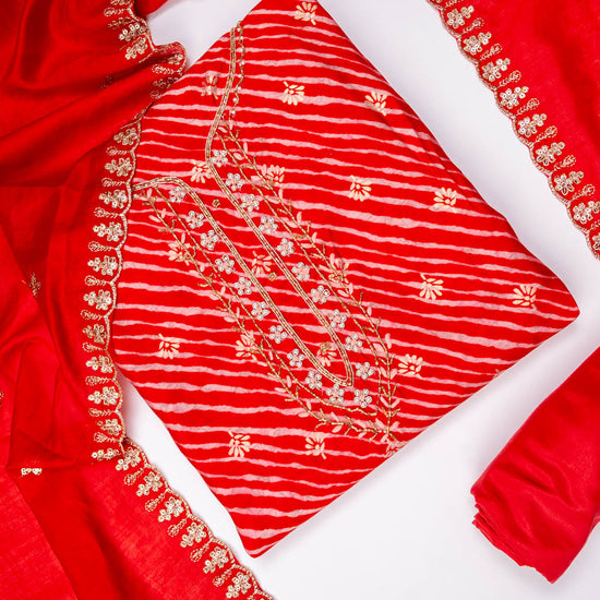 Red Dola Unstitched Salwar Suit With Cotton Dupatta