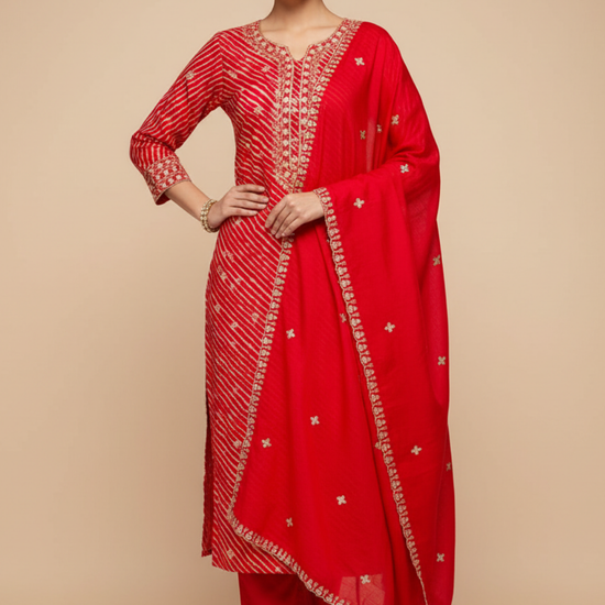 Red Dola Unstitched Salwar Suit With Cotton Dupatta – The Panna Shop